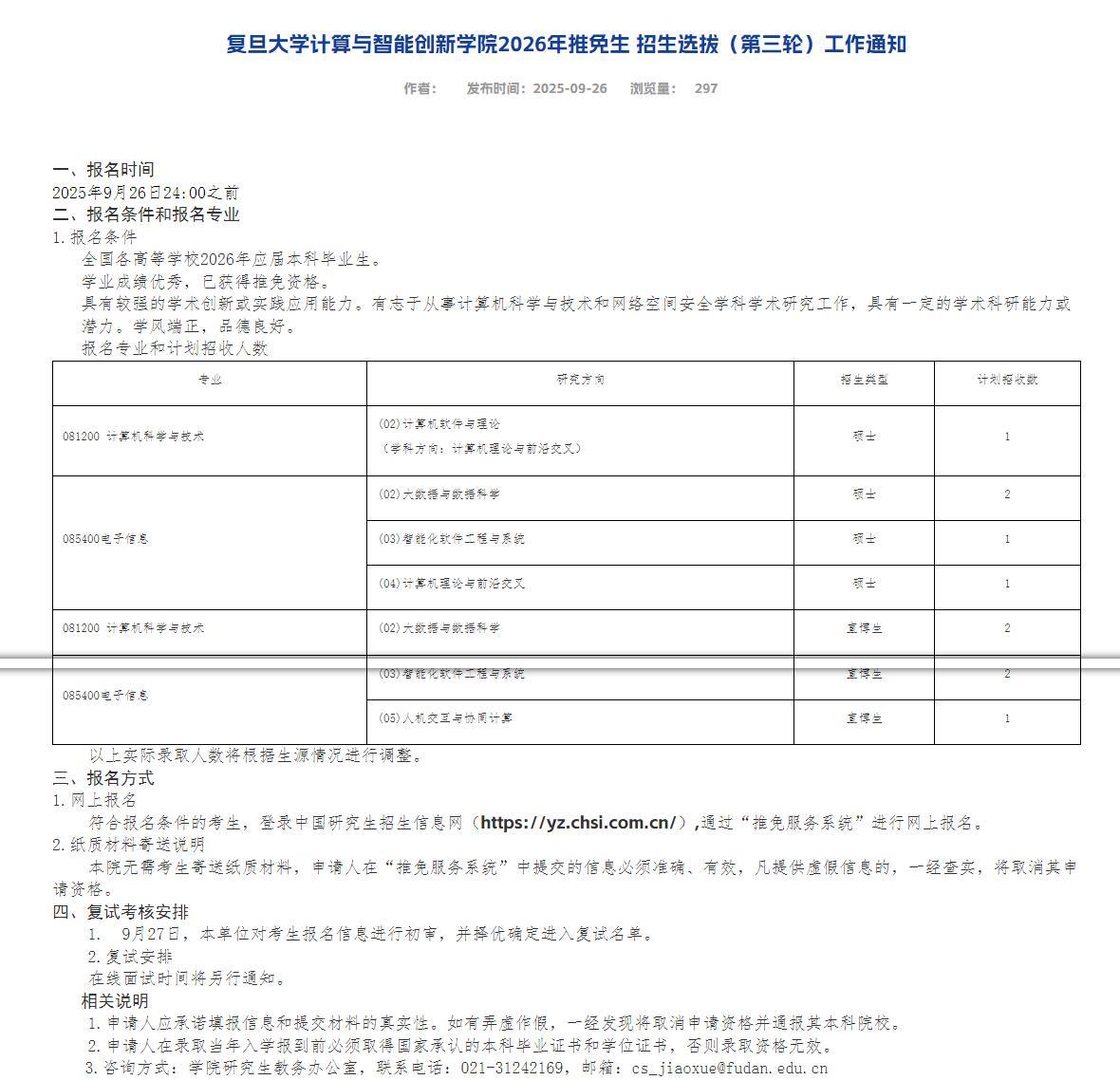 没想到,家长群不仅本科生有,硕博一样有。孩子到哪里,家长群就跟到哪里。清华北大一样有……可怜天下父母心!交流交流也没啥坏处,挺好。 很多大学的推免没有招满,正在征集,没有上岸的抓紧时间联系!比如复旦大学计算与智能创新学院……