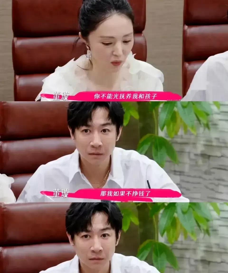 终于明白董璇为什么选择张维伊了,因为张维伊太聪明了! 不信你看,他和董璇商量家庭经济管理时,首先提出主动放弃董璇婚前财产的继承权,而且愿意分担董璇婚前的债务,怎么样,是不是谁听了都会有点感动,不要你的钱还替你还债,这么好的男人到哪里去找? 张维伊这么一说,他的身高瞬间增长了好几公分,马上高大了起来。 但是随后话锋一转,张维伊就提出两人以后要把所有的钱都放一起,然后两人共同管理。 怎么样,张维伊是不是很聪明?虽然这个计划最后并未成功,但是董璇也没有表现出明显的反感,这也就意味着,董璇很吃这一套。 董璇给人的感觉就是太老实,这样的人往往会被比较聪明的人吸引,因为自己越缺什么就越喜欢什么样的人,所以尽管她也清楚张维伊目的不是那么纯粹,但还是愿意和他在一起,这可能就是传说中的“男人不坏,女人不爱”吧。
