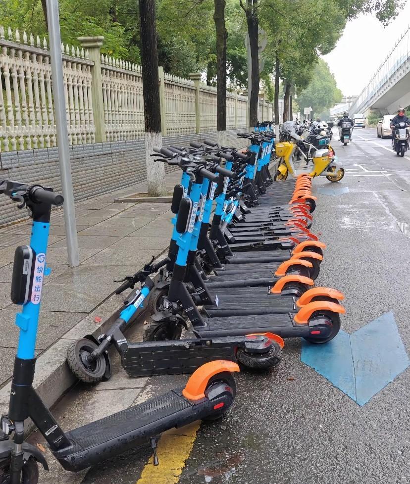 长沙果然很潮流!路过湖南工商大学,看到路边停了很多这种电动式滑板车,我记得这种车