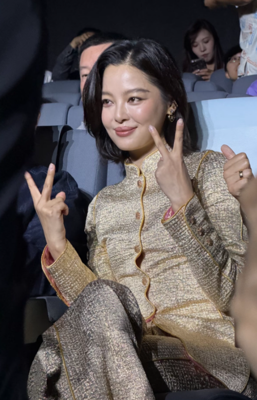 辛芷蕾对着镜头比剪刀手的样子,真的好可爱,给人的感觉,也好nice啊。