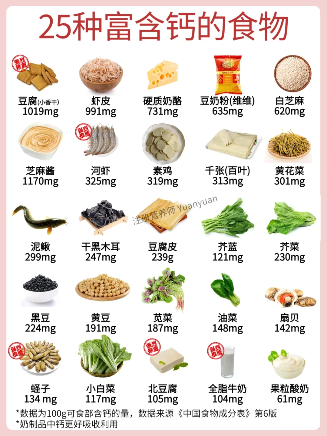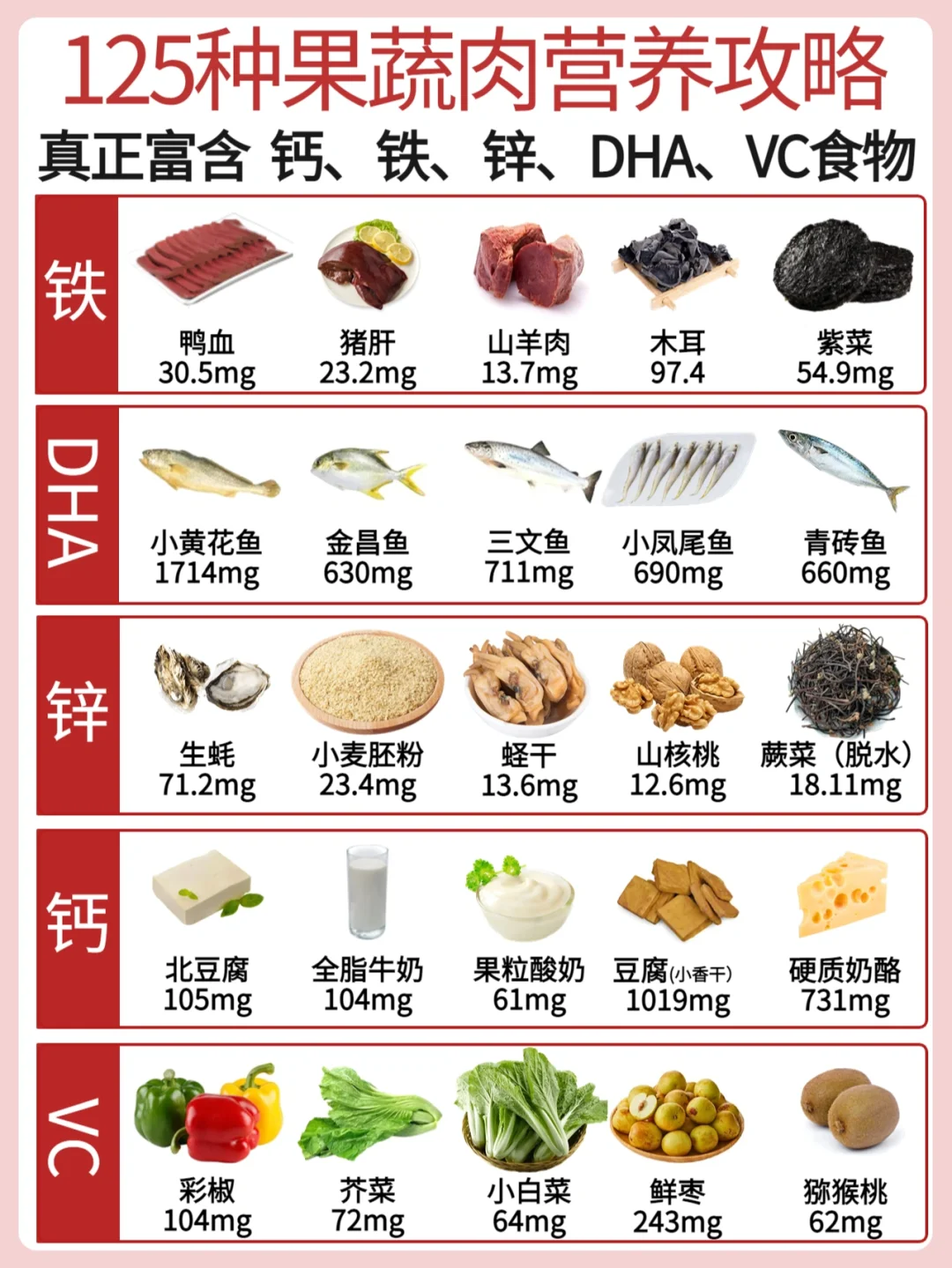 👉整理了125种富含,可以补充钙、铁、锌、维生素C、DHA的食物。快来收藏保存!!