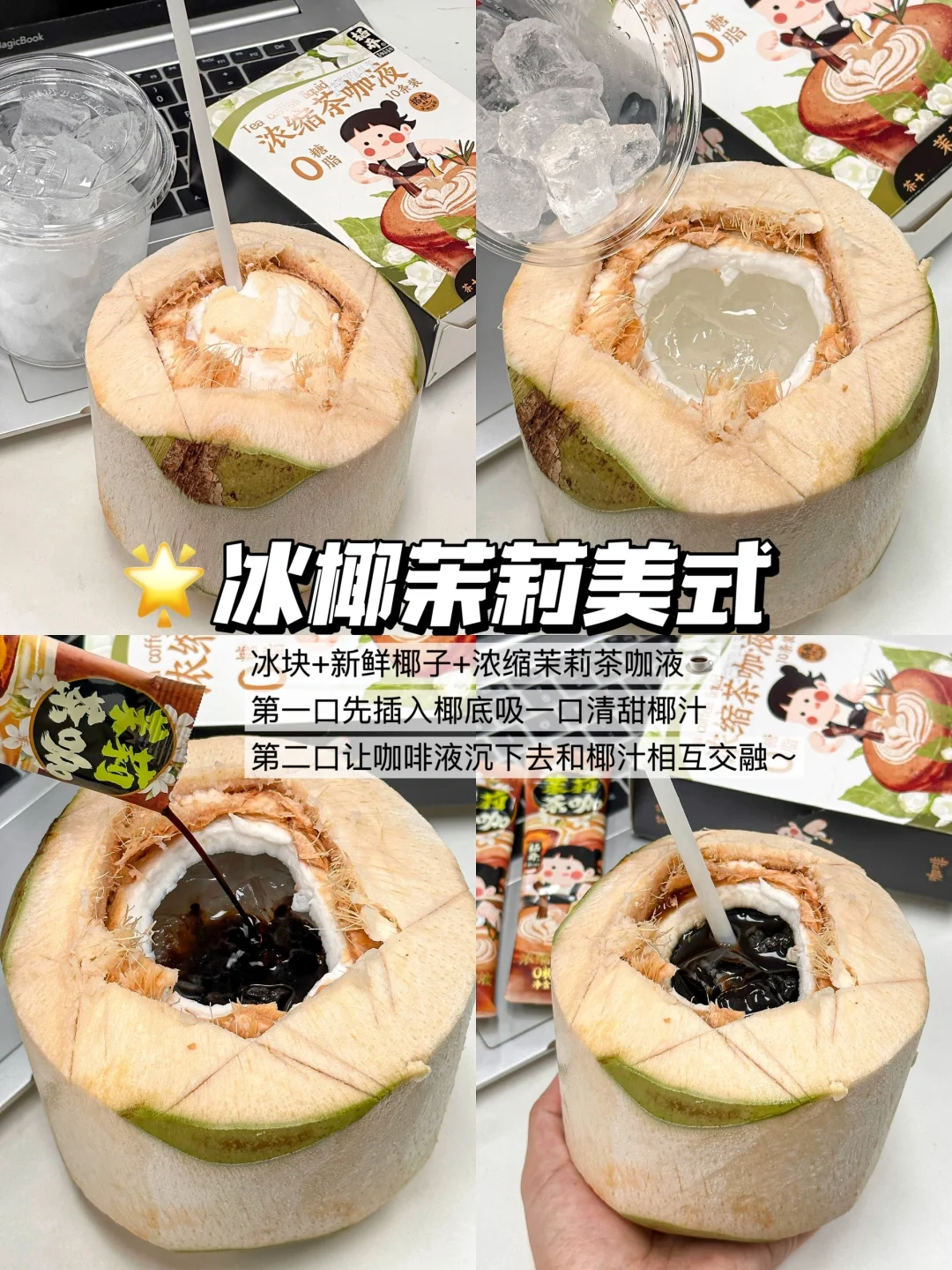 冰块+浓缩茉莉茶咖啡液+新鲜椰子🥥