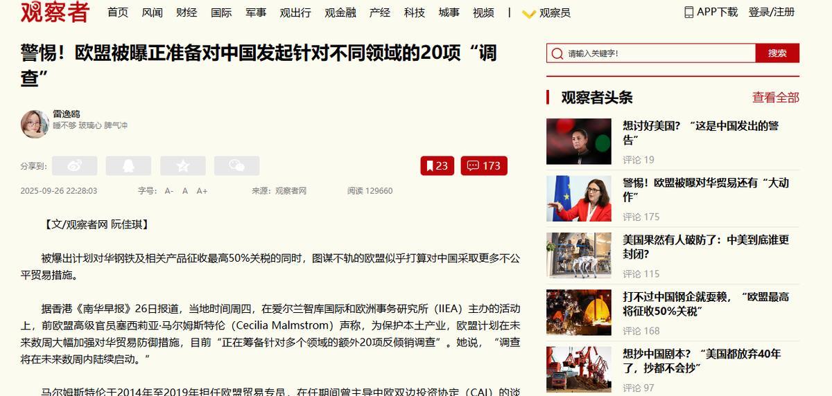 必须要警惕!欧盟的心思藏不住了,刚传出对中国钢铁下狠手,又被曝要发起 20 项调查,覆盖好几个领域,这是想断合作的路? 最近欧盟的操作真是让人看笑了 —— 刚传出要给中国钢铁加最高 50% 的税,前欧盟高官又放话,未来几周还要搞 20 项针对中国的反倾销调查! 更离谱的是,他们还暗定规矩:以后修地铁、买电动车,都得优先用欧洲自己的。 这哪是做生意,分明是耍无赖拦中国产品的路,可这么干真能解决他们的问题? 他们敢这么横,其实心里虚得很,无非三个小心思。一是怕自家产业没竞争力,就想 “堵门” 护着。 咱们中国的钢铁、电动车又好又实惠,全球都认,欧盟企业不琢磨改进技术,反倒撺掇着搞关税、定规矩挤走中国货,这就是打不过就耍赖! 二是看美国脸色,跟着打压中国,现在特朗普回了白宫,对欧洲呼来喝去,欧盟不敢跟美国硬刚,倒把气撒在咱们身上。 美国说咱们 “产能多”,欧盟就跟着喊;美国搞技术封锁,欧盟就抹黑咱们管稀土是 “拿资源当武器”。 可面对美国的贸易欺负,欧盟立马秒怂 —— 之前跟美国签的 “投降式” 协议,他们还帮着圆场,说这是 “最好结果”,欺软怕硬也太明显了! 三是想转移内部矛盾,这些年欧盟经济不行,通胀高、工作难找,就想找个 “替罪羊”,把老百姓的不满引到中国头上。 说 “中国抢了欧洲工作”,其实就是自己政策没做好,让中国背锅,太没水平了! 咱们应对也有章法,不惹事但绝不怕事。 首先,该反击就按规矩来,比如之前欧盟对咱们猪肉加税,咱们就依法调查,既护了自己,也没落下话柄;他们搞反倾销,咱们就拿证据应诉,让大家看清谁不讲理。 其次,也不用吊在欧盟一棵树上,咱们的货在东南亚、拉美特别受欢迎,多跟这些国家合作,生意照样做,欧盟想卡脖子没那么容易。 更关键的是练内功,把钢铁、绿色能源的核心技术攥在手里,产品质量硬,欧盟再搞壁垒也没用。 还能跟欧洲里讲道理的国家(比如对保护主义挺谨慎的德国)多沟通,让他们明白合作才双赢。 欧盟现在又怕美国施压,又怕中国发展快,想两边讨好,最后只会两边不讨好。 咱们心里有数,只要自己够强,他们这些小伎俩,根本挡不住中国发展的脚步!