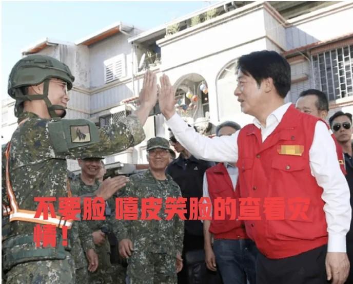 丧尽天良的赖清德,听听受灾的老百姓哭着说:让大水冲走死了一走了之就好了,活着还要处理受灾重建。说好的救灾,人都没来,救什么鬼呀! 赖清德还嬉皮笑脸的到达灾区,还与军人笑着击掌,赖清德毫无同情之心,问一名忙于清理杂物没法洗脸的男孩“为什么脸黑黑的”。在听到一名重建家园的中年女子称“老公身体不好”,没能一同清理时,赖清德又表示“好像每一家老公身体都不好”。这种人物眼中无老百姓的所谓领导人,只能说老百姓真是瞎了眼会选上这种人作为地区管理者。 更有馆店老板面 一片狼藉的灾情,哭者说,还不这被大退冲走了就好,死了什么事都没有了,8 年辛苦经营的馆站全都没有了! 更有个农场表示,一夜之间 120 只牛全被冲到太平洋了,什么都没有了!这就是台湾政府的管理者不作为的结果! 赖缺德作为一个地区主管者,都这么无心 无责任的对待灾情 灾民 ,想想其下面的人 还有责任心吗? 民进党有一些毫无道德底线的人王定宁,在内部聊天群公开召集自己的绿营同事挖傅崐萁的黑料,然后攻击他!相当于把老百姓的死当武器,来攻击自己的政敌!为了政治斗争,可以把人命当筹码。 从7月底至今,花莲县府多次向台当局示警,呼吁比照过去南投堰塞湖爆破经验处理,却被台当局一再淡化危险,农业单位甚至直到昨日仍称“没有立即危险”,如今却酿下人命重大伤亡,令人痛心。 如今毫无作为的政府部门 除了眼中的政治混蛋之外,其它一无是处,这样的赖政府真希望台湾民众合力推翻它,让赖缺德下台,滚蛋! 如今受灾的台湾民众 就问了一句话:接下来怎么办呢?如今台湾主管部门没有一个人能够回答老百姓的苦言!人死亡了,人失联了,财产没有了,老百姓接下来如何活下去呢?更有许多的台民众表示,如果有中国大陆的人民解放军救灾及处理灾情,根本就不会这样!台湾老百姓羡慕大陆政府的管理能力,也寄希望人民子弟兵的保护老百姓的力量。