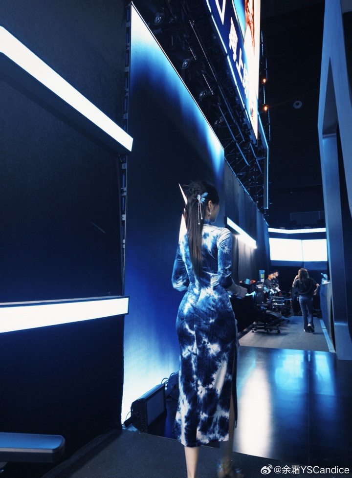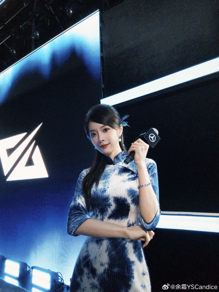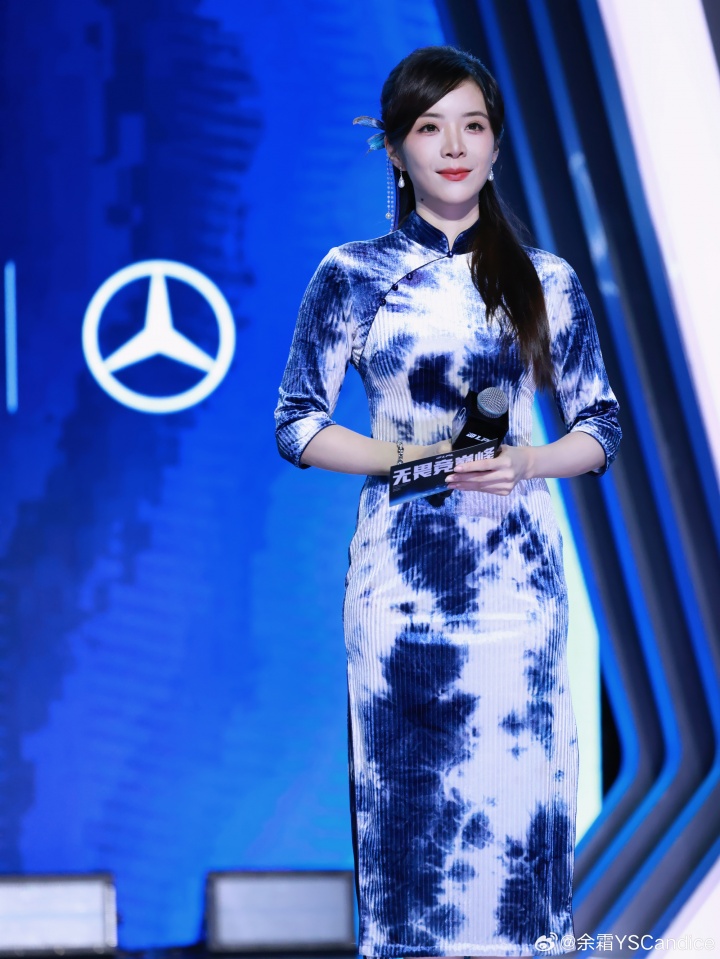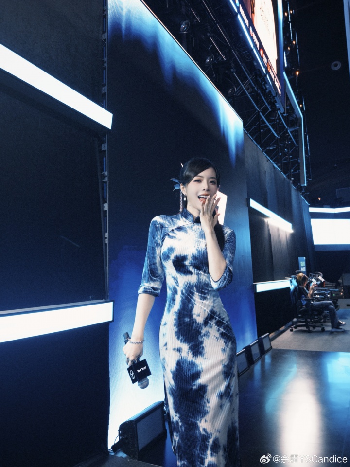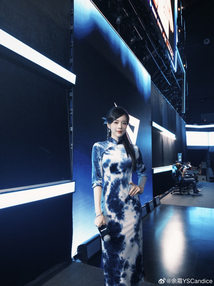 女主持人余霜晒出昨晚LPL冒泡赛工作照:墨染倾城~青花旗袍~