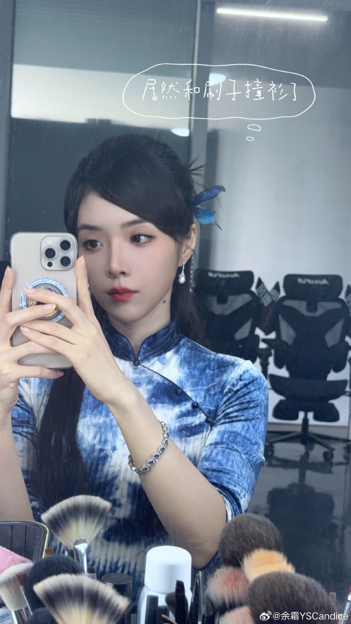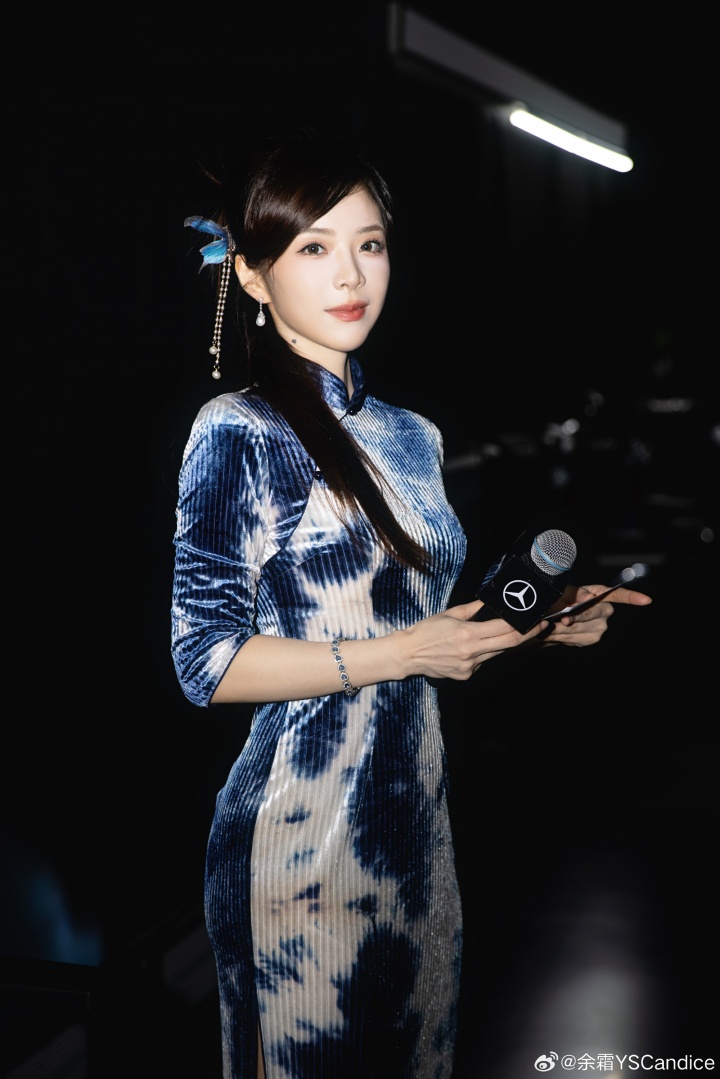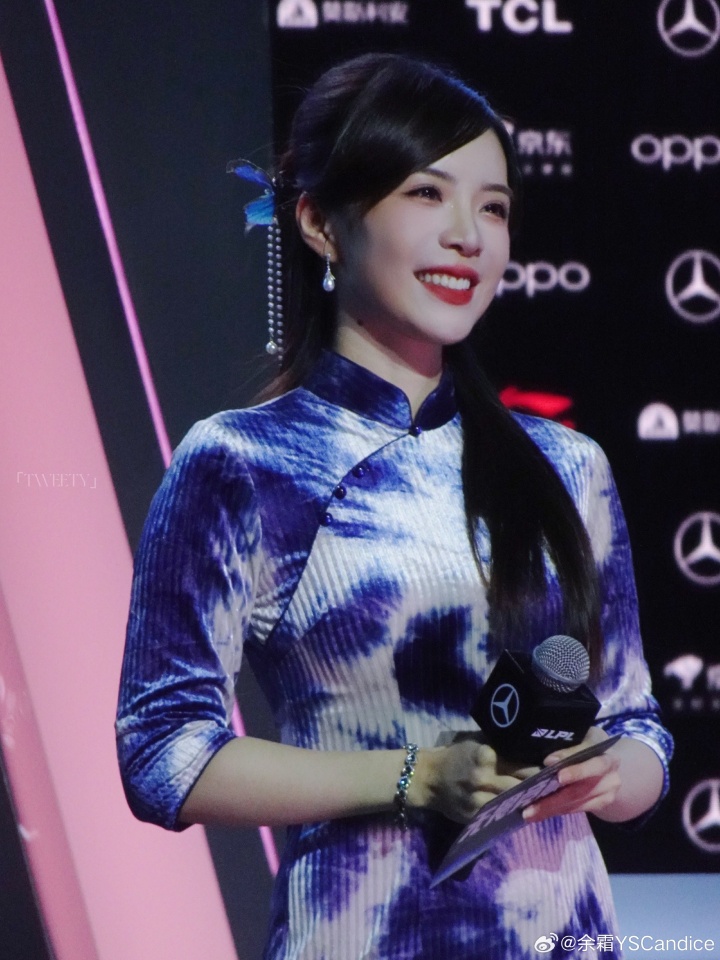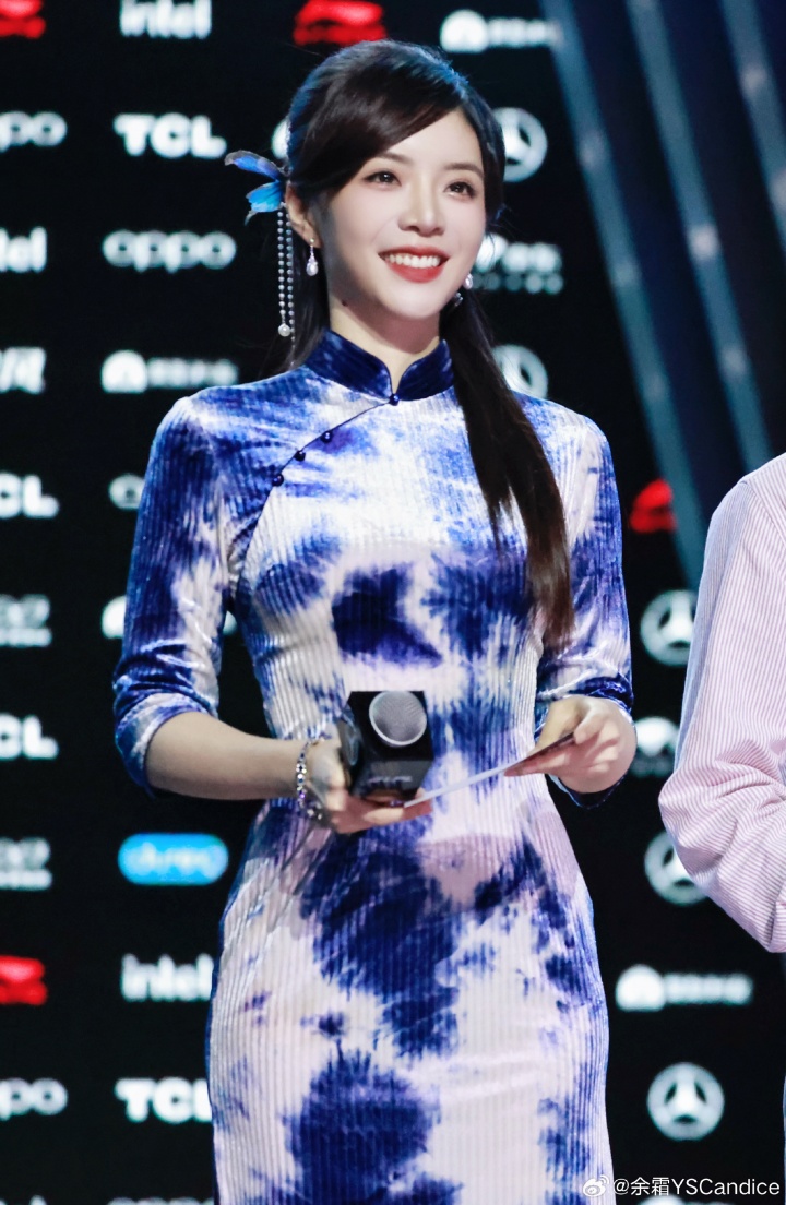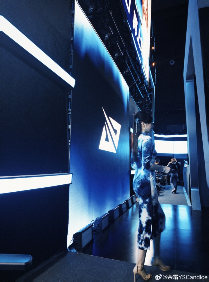 女主持人余霜晒出昨晚LPL冒泡赛工作照:墨染倾城~青花旗袍~