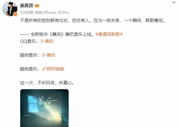 哇哦~连续发布两首单曲,秦霄贤也太给力了。刚刚,秦霄贤连续发文,分享了两首新单曲