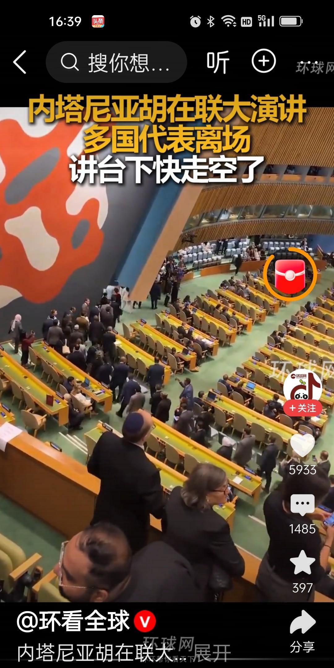 原来联合国大会也可以退场。 9月26日以色列总理内塔尼亚胡,在联大第80次一般性会议上发言,会场里有一百多个代表,不顾主持人劝阻,选择退场。 伊朗代表位置,更是留下加沙死亡儿童照片。 有网友问,我们离场了吗? 有网友说,五常都未离场。 场子还是要撑,我不同意你的观点,但我捍卫你发言的权力。