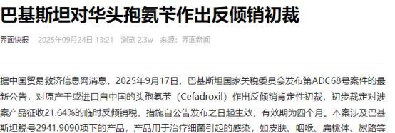 不可思议!巴铁竟然宣布制裁中国?9月24日,巴基斯坦国家关税委员会宣布对原产于中国的头孢氨苄作出反倾销初裁,决定征收21.64%的临时反倾销税,即刻生效,有效期四个月。不少网友跟着起哄,说出口品质量比内销好、靠压榨劳动力降价,这话说得太片面,得扒开表象看里头的真东西。 先理清巴基斯坦这次反倾销的来龙去脉,再拆解产业优势的内核,就能明白网友起哄的说法实在站不住脚。所谓“巴铁制裁中国”的论调首先就站不住脚,这21.64%的临时反倾销税可不是拍脑袋搞出来的突然袭击,完全是按规矩走的流程。 巴基斯坦国家关税委员会还专门发了公告,说当地企业拿出了证据,能证明中国的头孢氨苄在他们那儿卖的价格低于正常价,这才启动了法律程序。 中间还得收集各种数据、开听证会、比对不同市场的价格,一步都没少,最后出的初裁结果都是凭这些实打实的证据来的,真不是故意针对咱中国。 再说说咱中国头孢氨苄为啥在巴基斯坦有竞争力,真不是网友说的“压榨劳动力”或者“质量双标”。咱中国本来就是全球最大的原料药生产国之一,头孢氨苄这东西的生产技术早就熟透了,而且好多企业都是规模化生产,产量上去了,成本自然就降下来了。 就拿华北制药举例吧,他们产的头孢氨苄胶囊,过了咱中国的仿制药一致性评价——这意思就是不管是质量还是疗效,都跟原研药差不多,但生产成本连原研药的几分之一都不到。 这种成本优势是靠啥来的?是靠先进的生产工艺、严到骨子里的质量控制,还有完整的产业链撑起来的,跟压低工人工资、降低质量标准半毛钱关系没有。而且咱中国药企在巴基斯坦定的售价,是看当地市场需求和其他品牌的竞争情况来的,跟国内卖多少钱没啥直接关联。 还有网友念叨的“出口品质量比内销好”,这其实是对咱中国药品监管的误会。咱中国对出口的药和国内卖的药,执行的是同一个质量标准——所有药都得符合国家药品标准,还得通过GMP(就是药品生产质量管理规范)的要求,少一个环节都不行。 比如昂利康这家企业,他们的头孢氨苄胶囊不光过了国内的一致性评价,还在往国际市场推,在巴基斯坦卖的货都是经过当地药品监管部门一层层审核批准的,不合格根本进不了当地市场。再说了,咱中国头孢氨苄在巴基斯坦的市场份额越来越大,要是质量不行,当地消费者能愿意买吗? 而且中巴的经贸关系,也不是一次反倾销调查就能晃悠到的这点儿贸易上的小摩擦,根本影响不了两国的大合作。 不过这次反倾销调查,也给咱中国药企提了个醒。在国际市场上,光靠价格低可不行,还得好好做品牌、多做市场推广,让产品更有附加值。同时,咱中国药企也得学会用法律手段保护自己的合法权益。这次巴基斯坦的调查,咱药企要是能拿出有力的证据,积极去跟对方沟通抗辩,说不定能争取到更有利的结果。 说到底,巴基斯坦对咱中国头孢氨苄出的这个反倾销初裁,就是一次正常的贸易救济措施,真不能简单说成“巴铁制裁中国”。 咱中国头孢氨苄能在国际市场有竞争力,是靠技术好、生产规模大,不是靠啥“压榨劳动力”或者“质量双标”。 中巴的关系还是很稳固的,这次调查不会影响两国的全面合作。咱中国药企也能借这个机会,再提升提升产品质量和国际竞争力,好好应对国际贸易里的各种挑战。