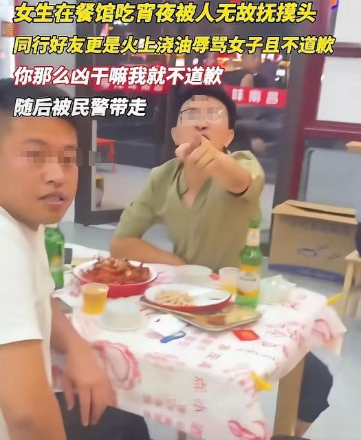 浙江杭州,女子吃饭时被白衣男子摸头调戏的这件事,现在大家讨论的焦点都集中在眼镜男