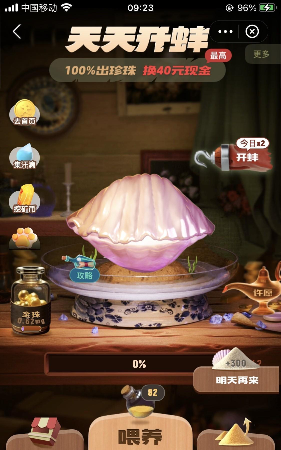 喂养一只三级蚌,到底需要多少养殖金? 稀里糊涂的,曾经喂养过2次三级蚌,却从来没有好好计算过需要吃多少养殖金。 今天一大早就辛苦自己,获得了5000多个养殖金,也就是可以喂养宠物蚌102次的样子。 系统给到的2次开蚌机会,真不想就这么浪费掉,就想把蚌喂养到二级的时候,开蚌! 一级喂养到二级,好好数了一下,一共用去20次,也就是1000个养殖金。 今天的二级蚌,没有开到多大的惊喜,2枚瑕疵白珍珠,一个比着一个的不值钱,一枚可卖1分钱,另一枚只有10个养殖金[泪奔] 还不如直接开一级蚌划算呢! 养蚌的过程,真心有喜有忧,有笑有泪,有时候也会有花又有果[玫瑰] #晒图记录生活#