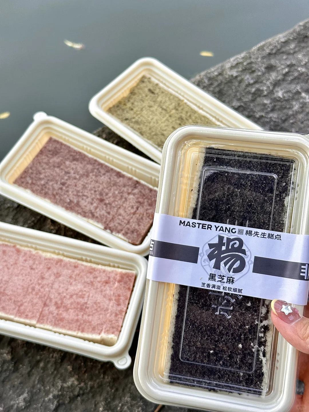 这家(杨先生糕点)每次来杭州都要给爸妈带!!六种不同的口味我好爱:龙井、桂花、黑芝麻…热一下会更松软!完全和冷吃是不一样的感觉!