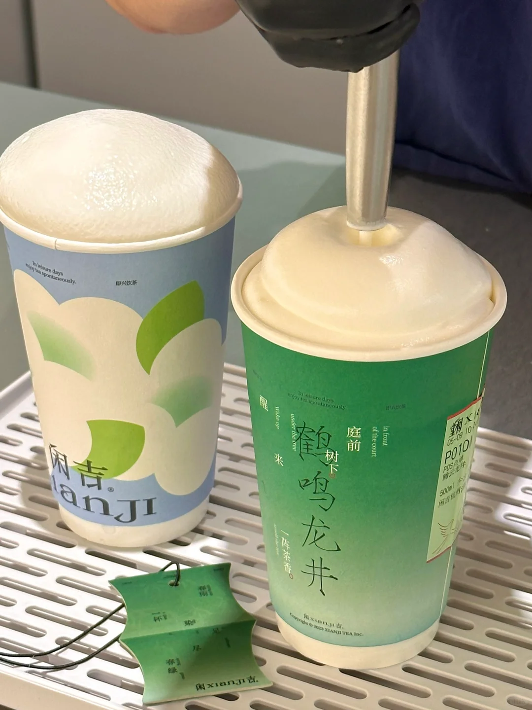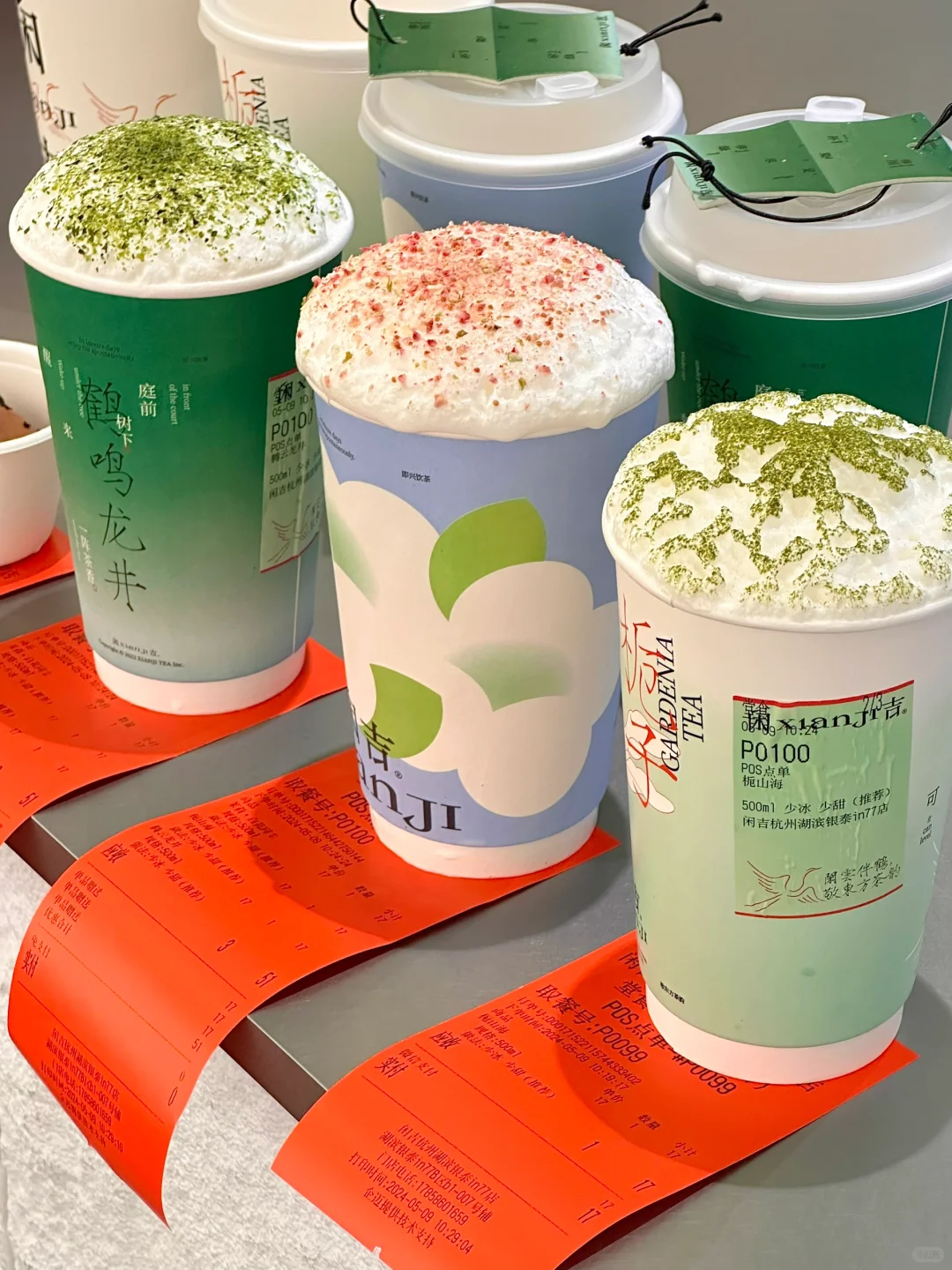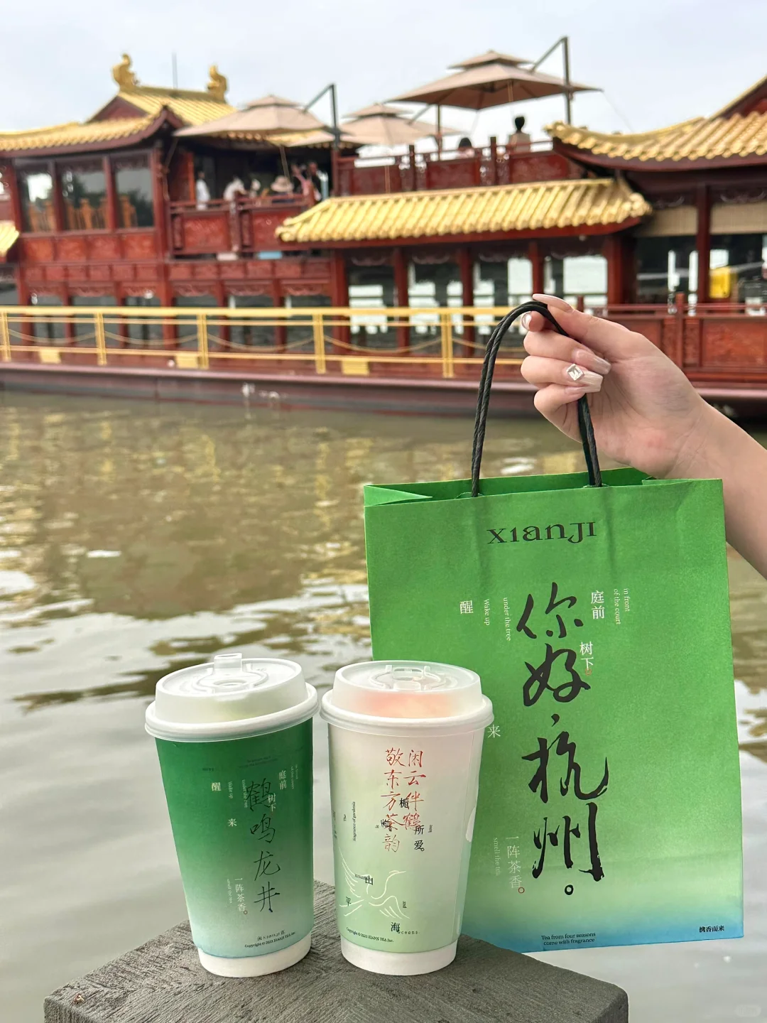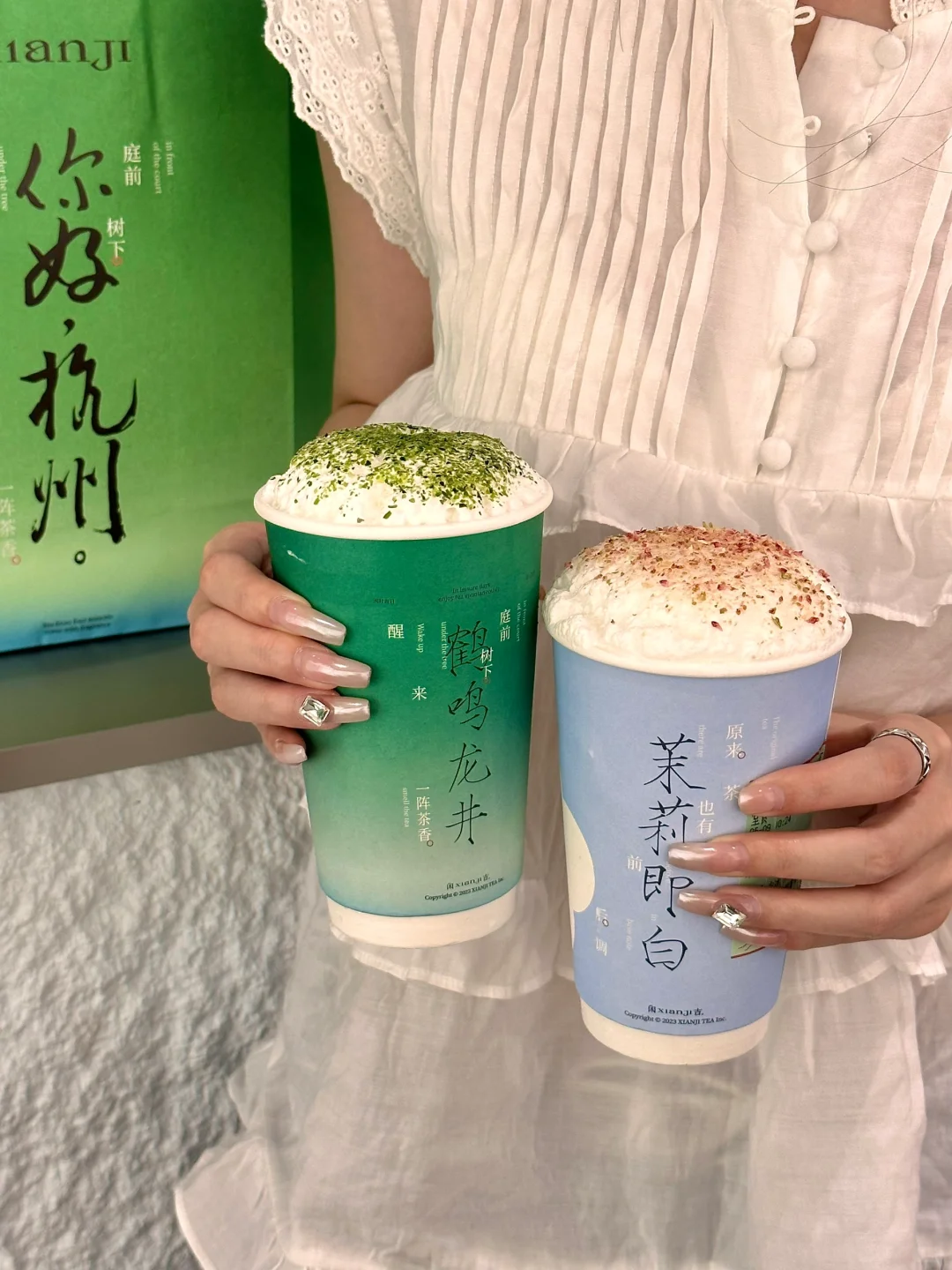 就开在in77!我们点了腾云龙井和栀山海都好好喝!!清新不腻 而且杯身的配色好江南!配的手提袋也好好看😭