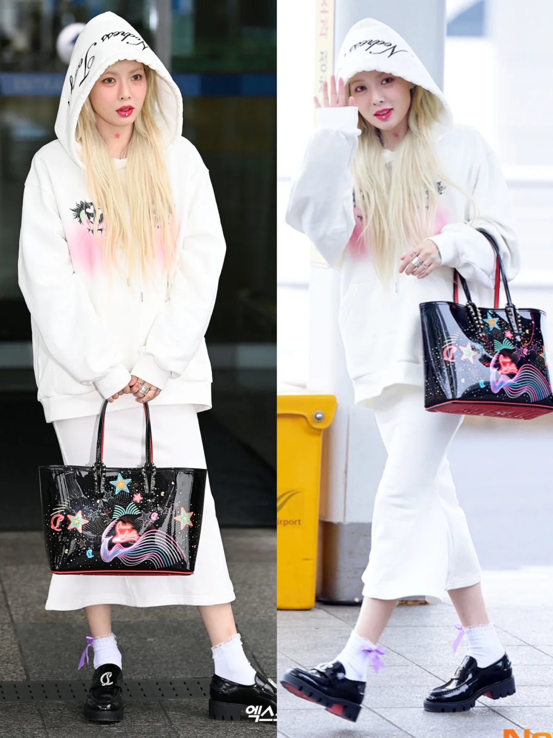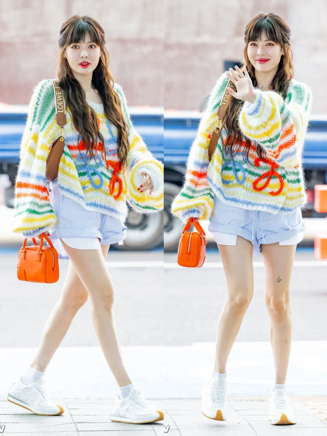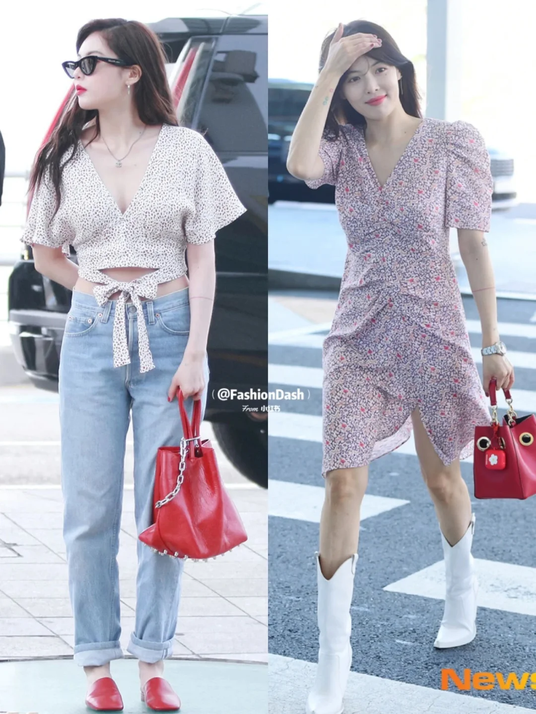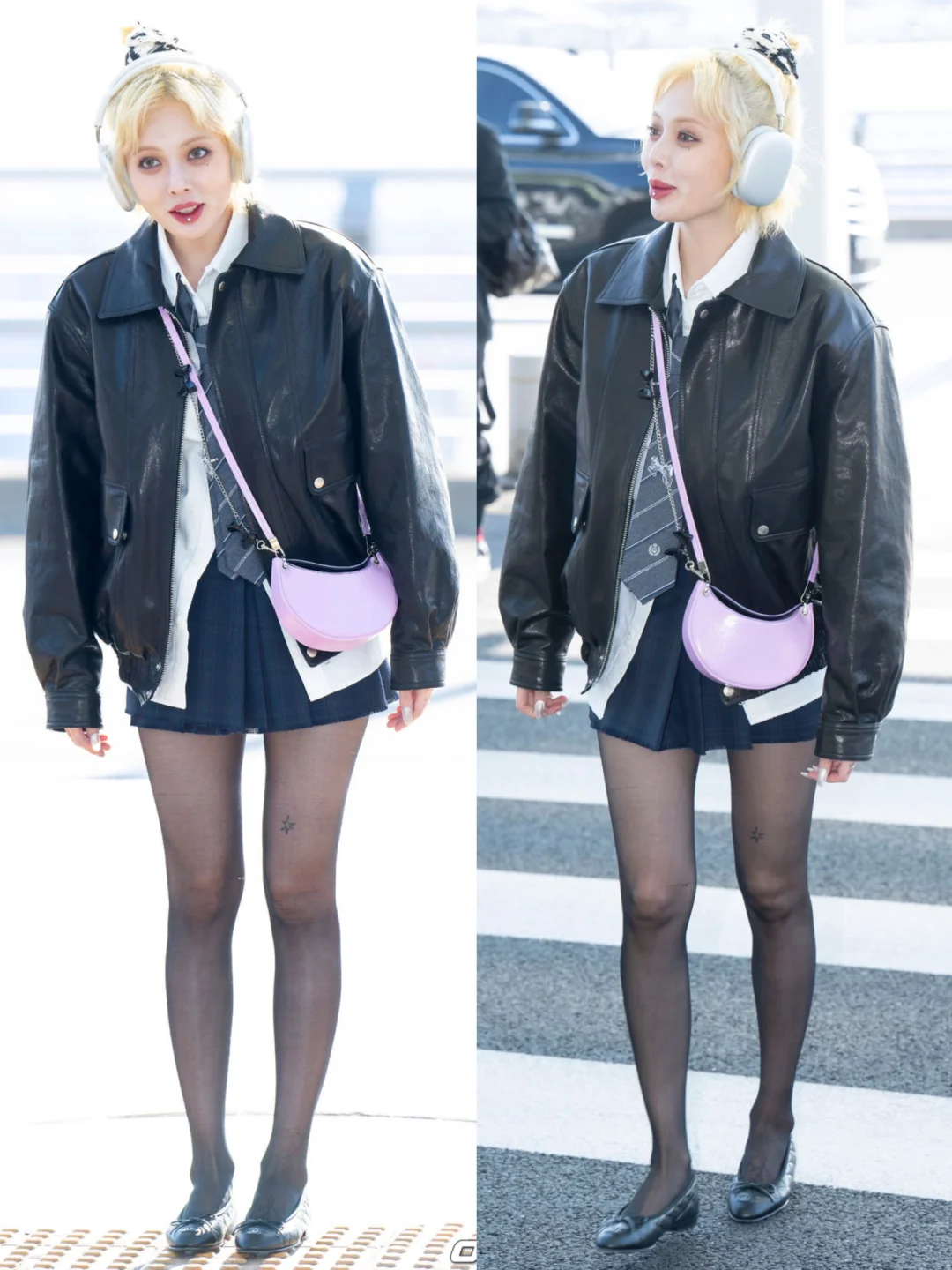 泫雅今日机场街拍,黑长直混搭风梦回从前,一起再来看下她的经典机场穿搭吧!