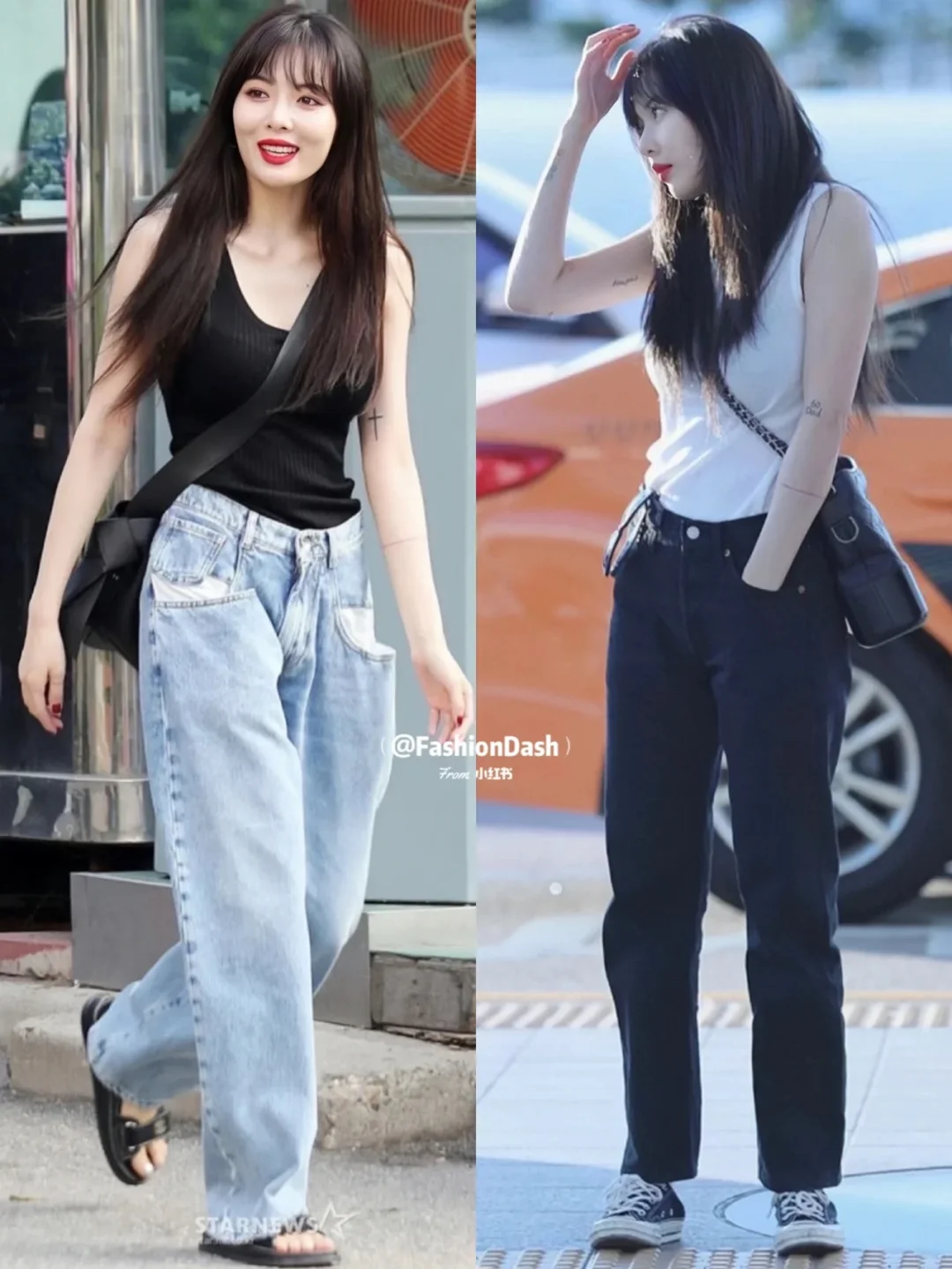 泫雅今日机场街拍,黑长直混搭风梦回从前!
