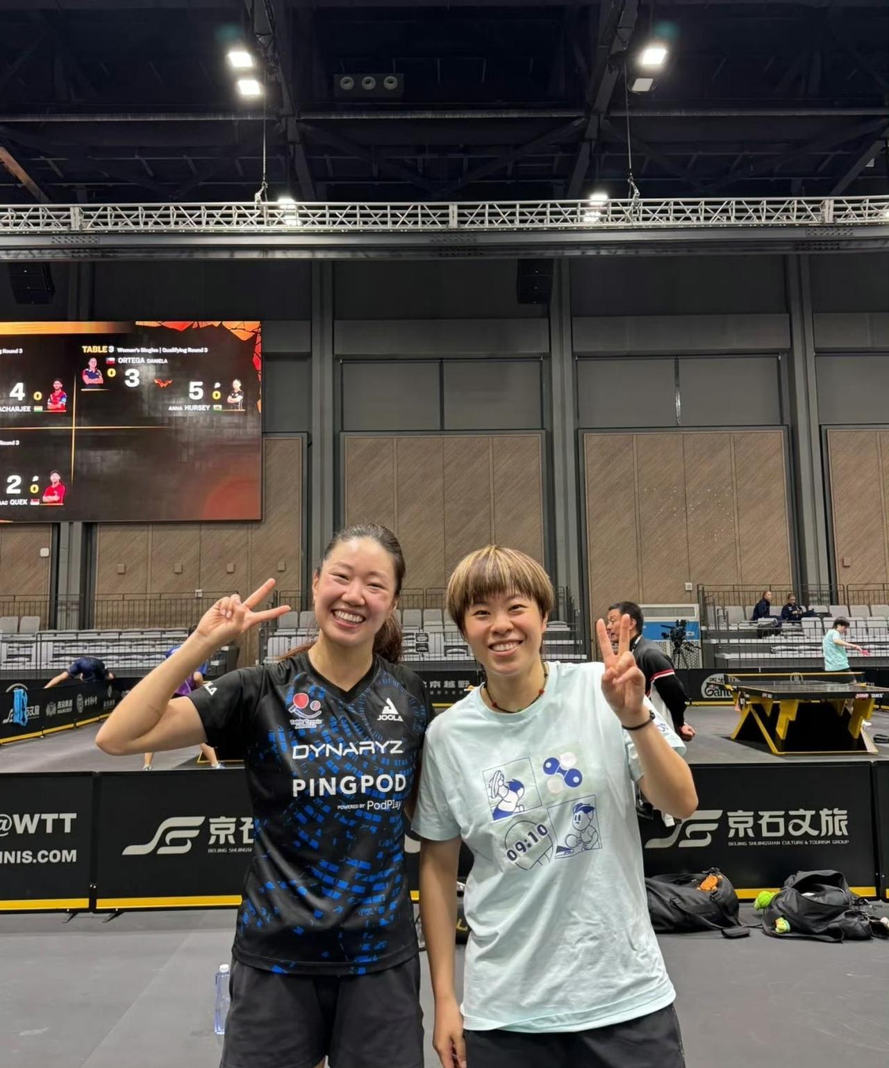 王艺迪和张安要一起打女双了。 马上就要开赛了,俩人赛前肯定是要沟通一下比赛中的手