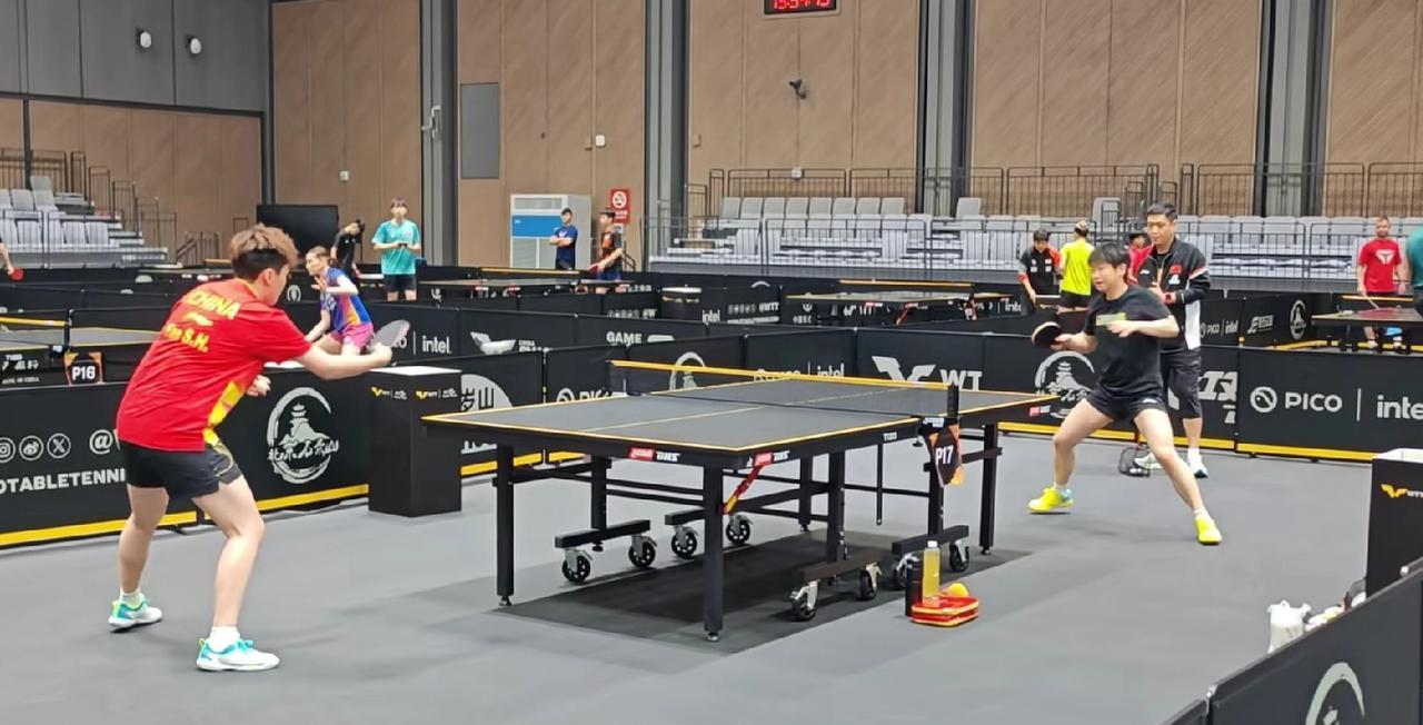 莎莎和范姝涵一起训练了。 明天的第一场揭幕战是莎莎对阵平野美宇,上午的时候看到平