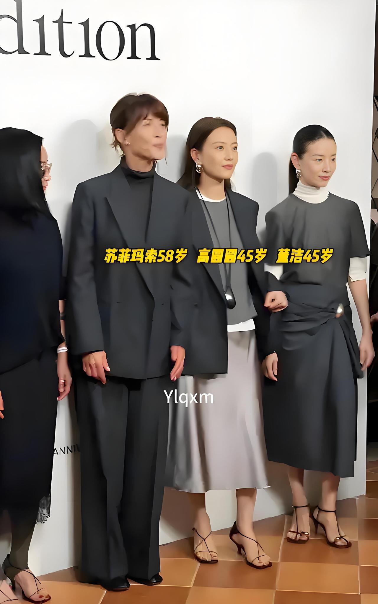 2025年9月26日,高圆圆、董洁与58岁的苏菲·玛索亮相上海某品牌十五周年大秀
