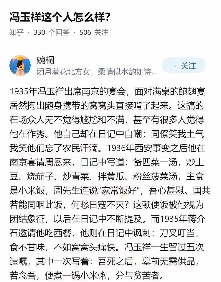 布衣将军冯玉祥,虽然是军阀,但不忘本,艰苦朴素的精神还是值得传承。。就是不知道,