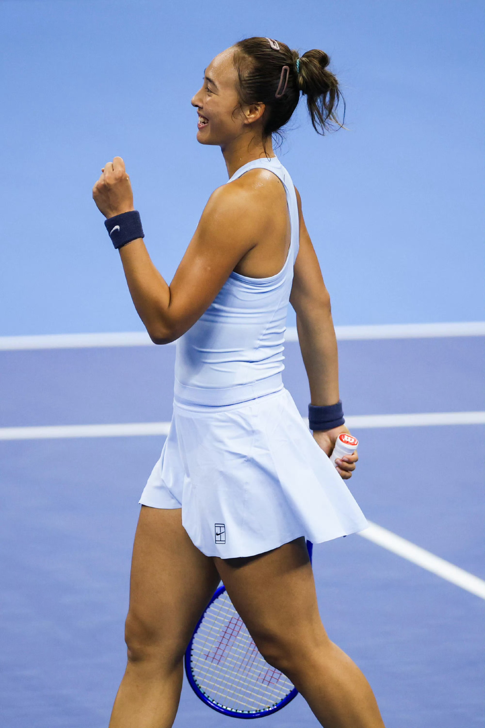 没有生疏,没有试探,上场就是一记干脆利落的制胜分。看她奔跑、挥拍、握拳给自己鼓劲,我忍不住感叹:对,郑钦文一点没变,甚至球风更加硬朗、还是眼神里写着“想赢”的闪光少女