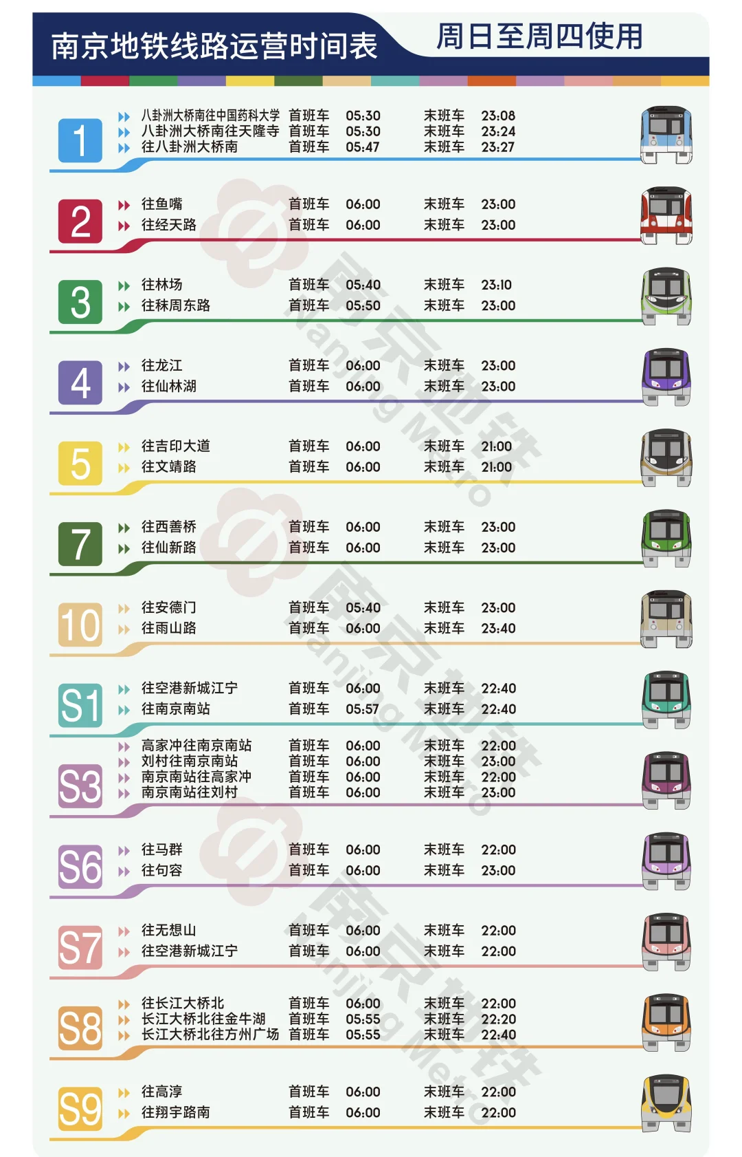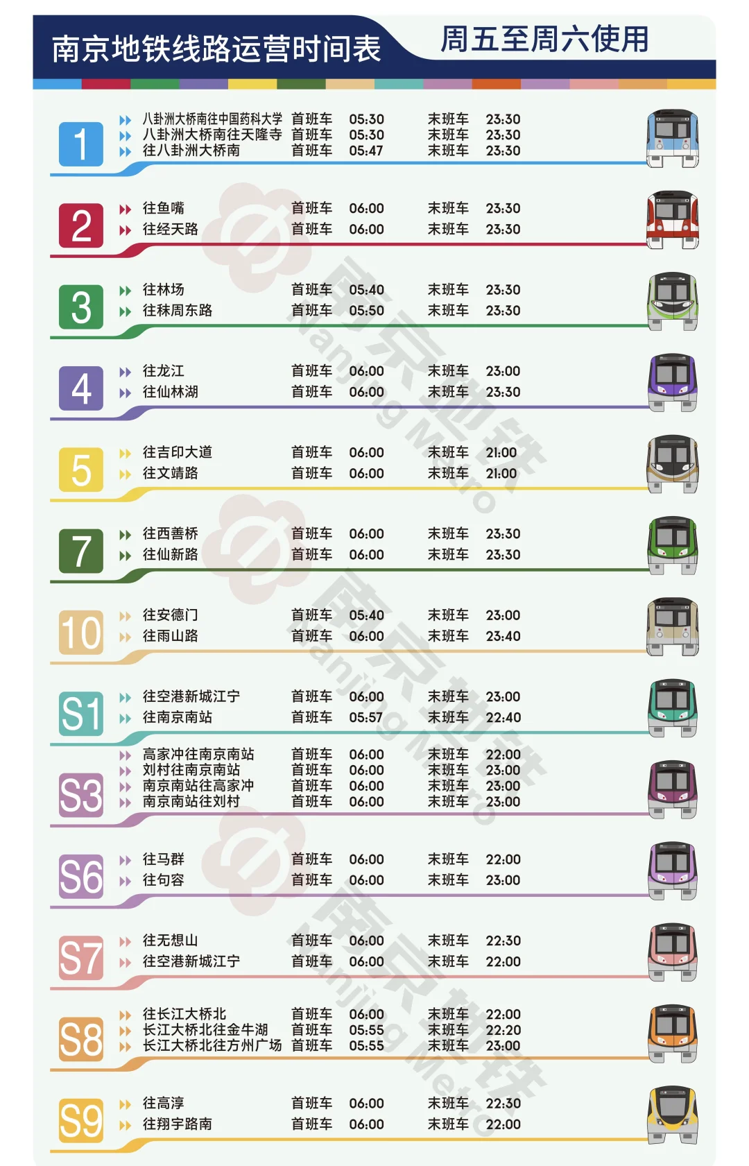 💥地铁线路目前分为周日~周四常态运营时间和周五~周六延长运营时间~