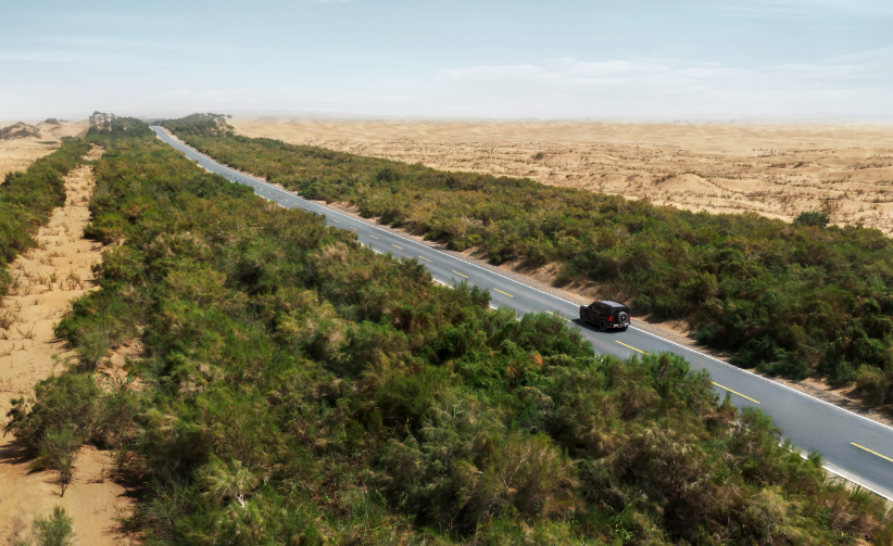 作为智能化硬派 SUV,豹 5 搭载的 DMO 混动平台与智能电四驱,能轻松征服沙丘沟壑与松软沙层,39° 接近角与毫秒级扭矩分配让巡护物资运输效率倍增。其 VTOL 外放电功能更化身移动电站,为偏远治沙点的设备运转提供稳定电力。从 “锁边” 合龙到 “扩绿” 推进,这辆不止于探险的座驾,正成为筑牢西北生态屏障的可靠伙伴,用科技力量见证沙漠变绿洲的奇迹。没有治不了的沙漠更没有无解的人生