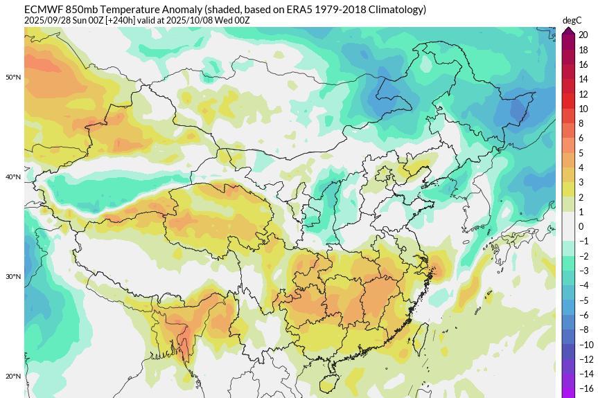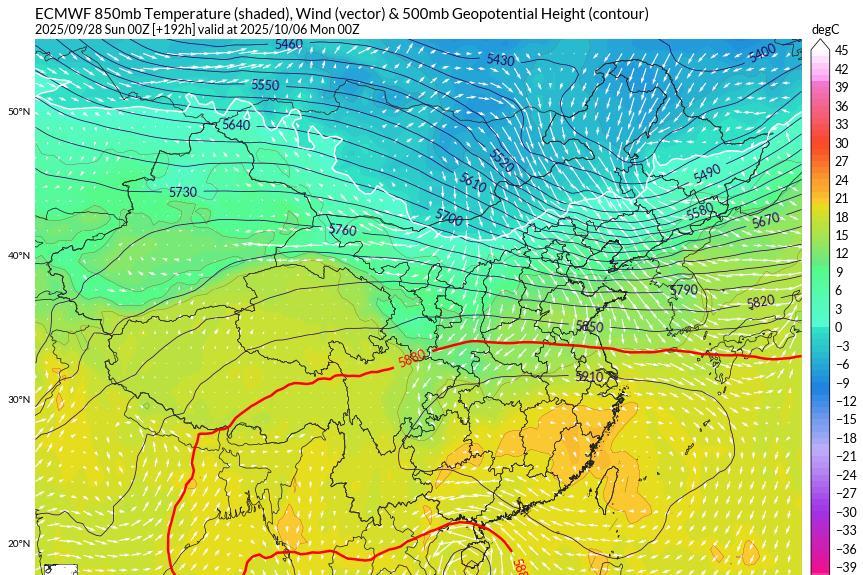 根据最新的数值预报,国庆假期后半段冷空气活动将显著增强,6号前后将有一股较强冷空气影响我国中东部地区,我国华北、黄淮、东北大部将出现一次明显降温过程。不过这股冷空气的南下程度目前还无法确定,上一报数值给出的冷空气南下很深,南方大部都会转为偏冷状态,这一报又大幅调弱了,南方地区气温还是以偏高为主,只是偏高幅度变小,从异常偏暖变为小幅偏暖。好消息是,就目前来看,不管冷空气南下深不深,7号起南方的高温应该就会彻底结束了。