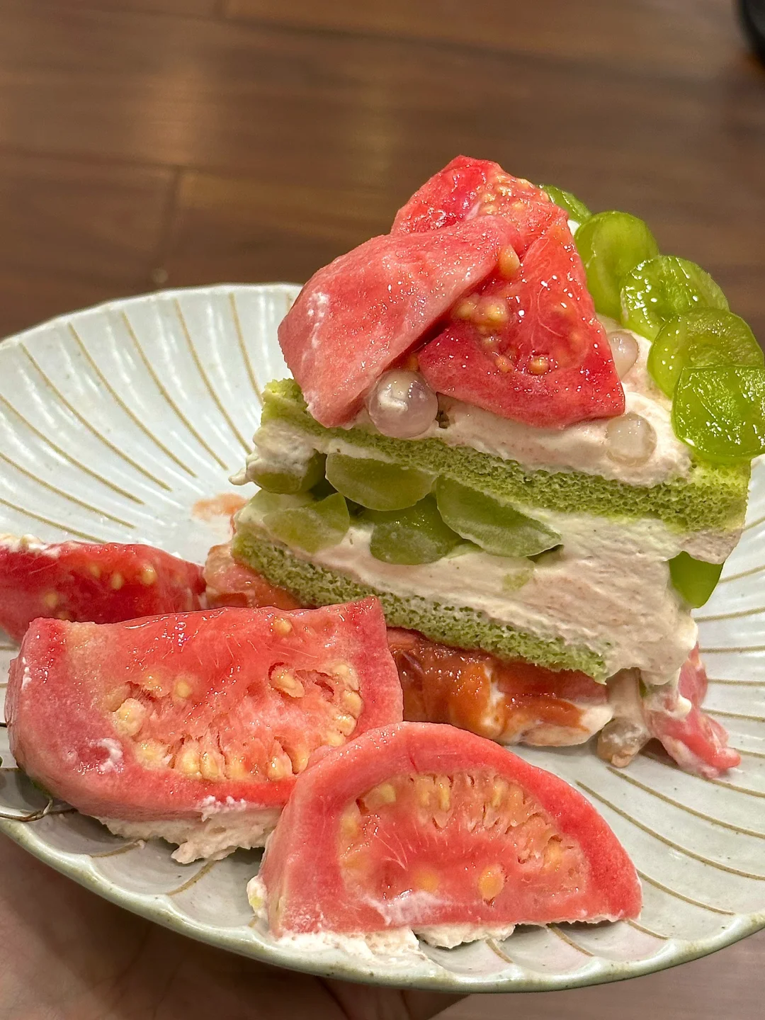 芭乐蛋糕入口像冰淇淋一样,回味有很清新的果香味😭甜品脑袋看到根本走不动路。。。