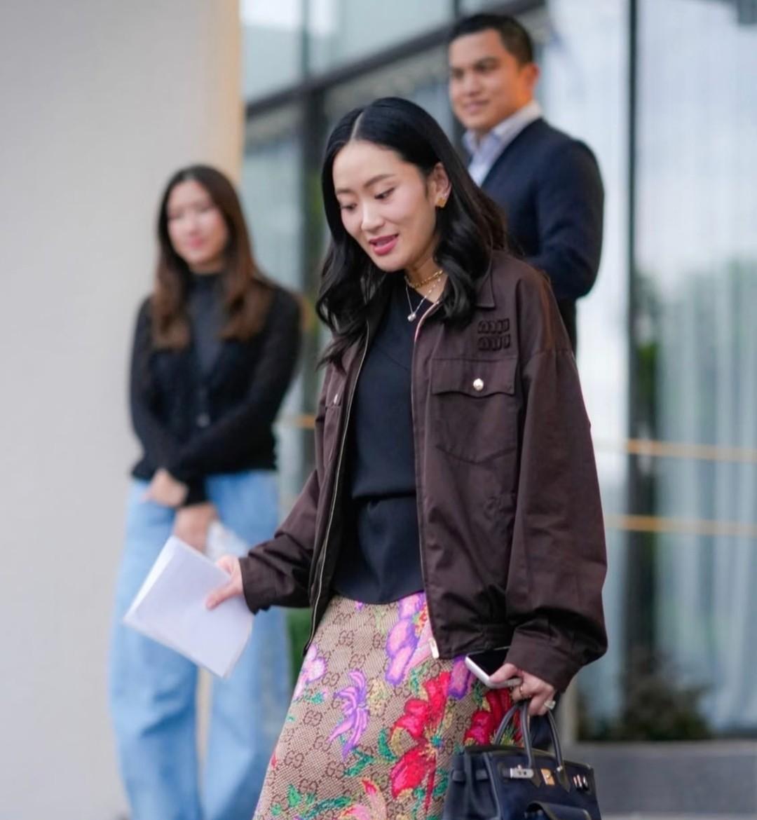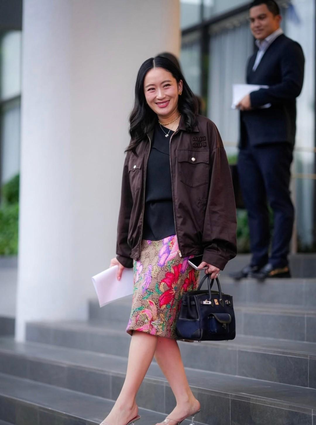 这是佩通坦下班时的照片。看她笑容满面的特别喜庆,和普通的漂亮女孩儿一样,给人的感觉很平易近人。就是看她穿着有点头重脚轻的感觉,上身穿古铜色夹克衫,下身穿复古风格的短裙,脚穿的鞋拖是透明的,感觉有点像光脚丫儿,没穿鞋似的。 看她明明可以做名媛阔太,但非得特别努力的坚持工作,真是很优秀的女孩儿,希望她以后仕途一片大好!