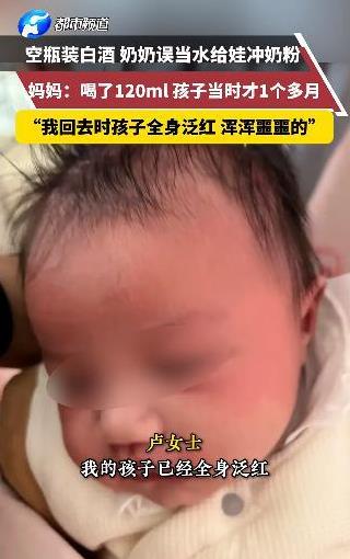贵州,孩子才一个月,奶奶误把桶装白酒当成纯净水给孩子冲了奶,过了几个小时才告诉孩