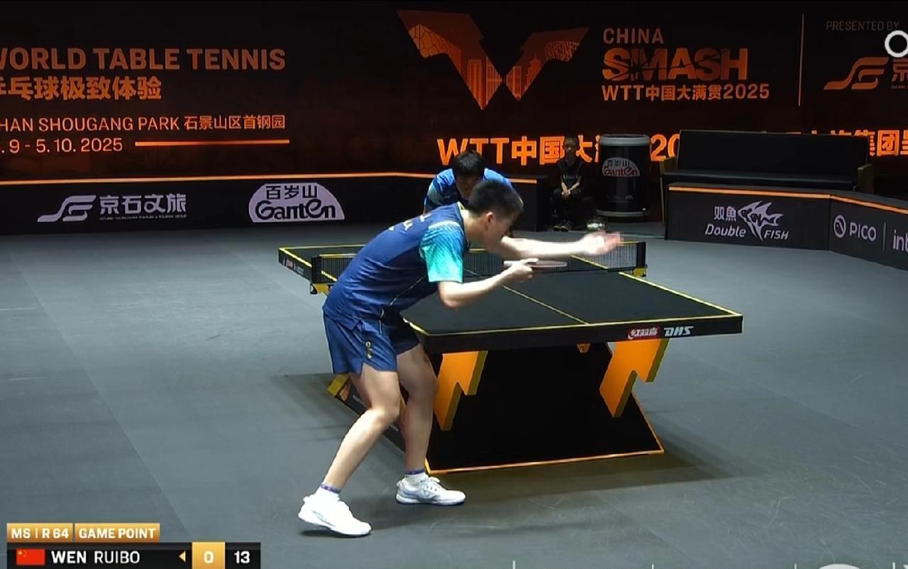 第一局兄弟俩打得水火不相容,比分咬的还挺紧,梁靖崑15-13赢了温瑞博 两个同命