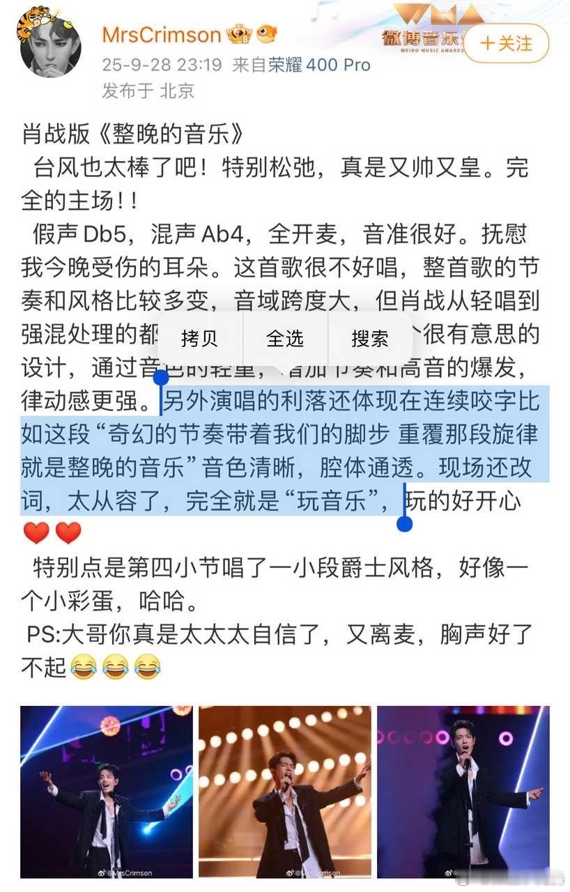 音乐博主对肖战的点评,还有些网友以为他演戏牛逼,没想到唱歌也牛叉,他本来就歌手主