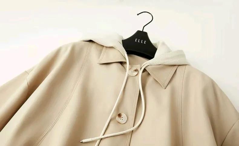 #秋冬服饰焕新季#聚酯粘胶面料抗皱,拆帽设计变风格,ELLE秋冬法式风衣通勤有格调