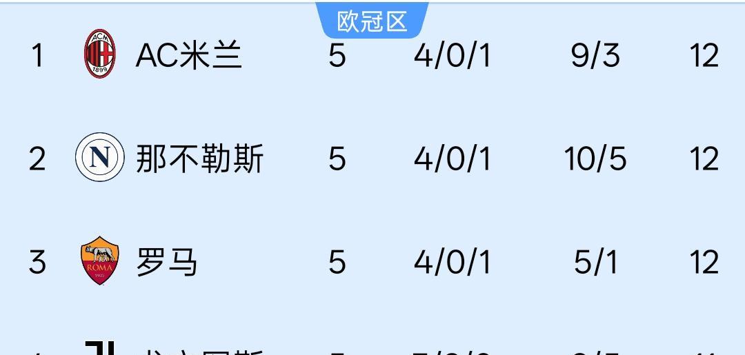 新赛季意甲已经战罢五轮,阿莱格里的AC米兰在主场2-1击败那不勒斯后,以净胜球的
