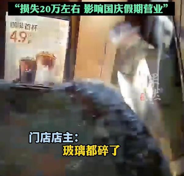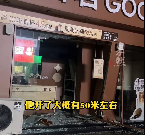 淮安,一名男子开着车子,不知道是因为疲劳驾驶,还是醉酒驾驶,卯足劲朝着一家奶茶店