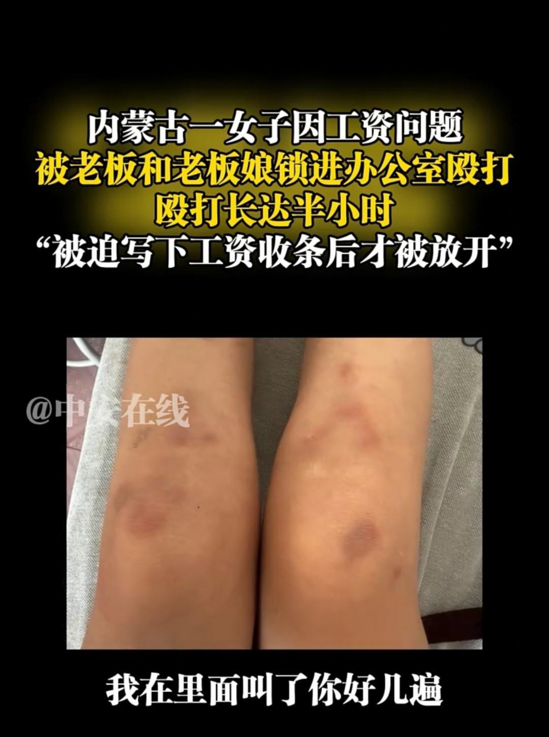 内蒙古,女子询问工资,被老板娘和老板锁在办公室,揪住头发踩在地上殴打,她写下工资