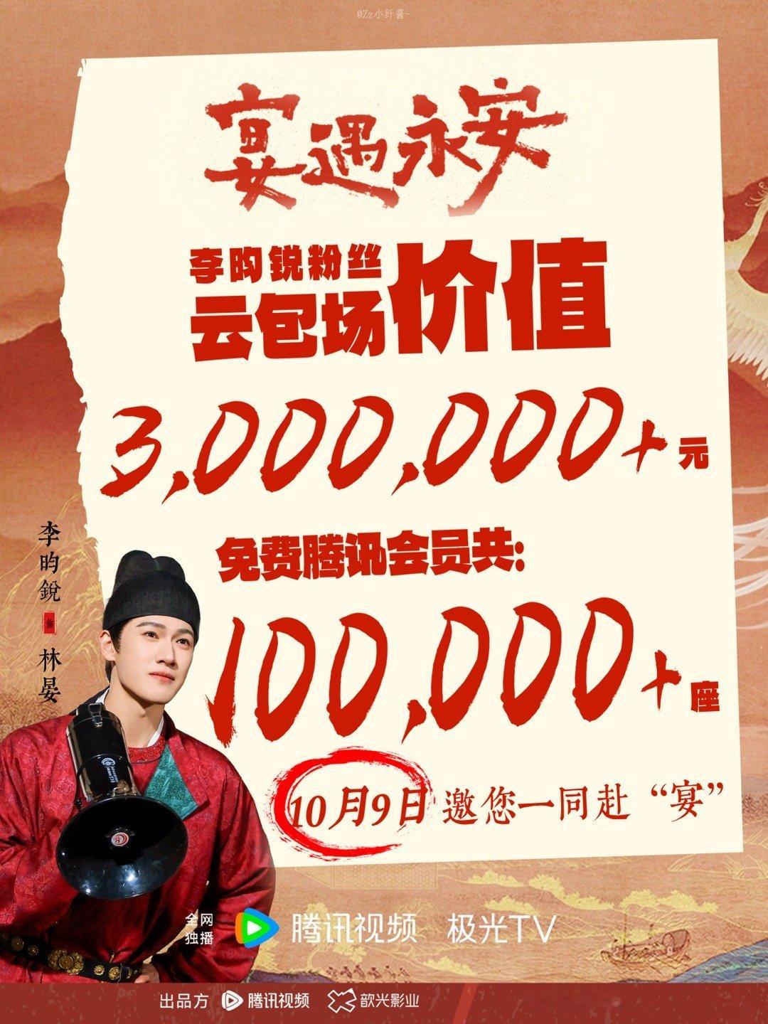 10.9大家可以来领李昀锐粉丝准备的云包场呀!粉丝好大方,送了10w+座~