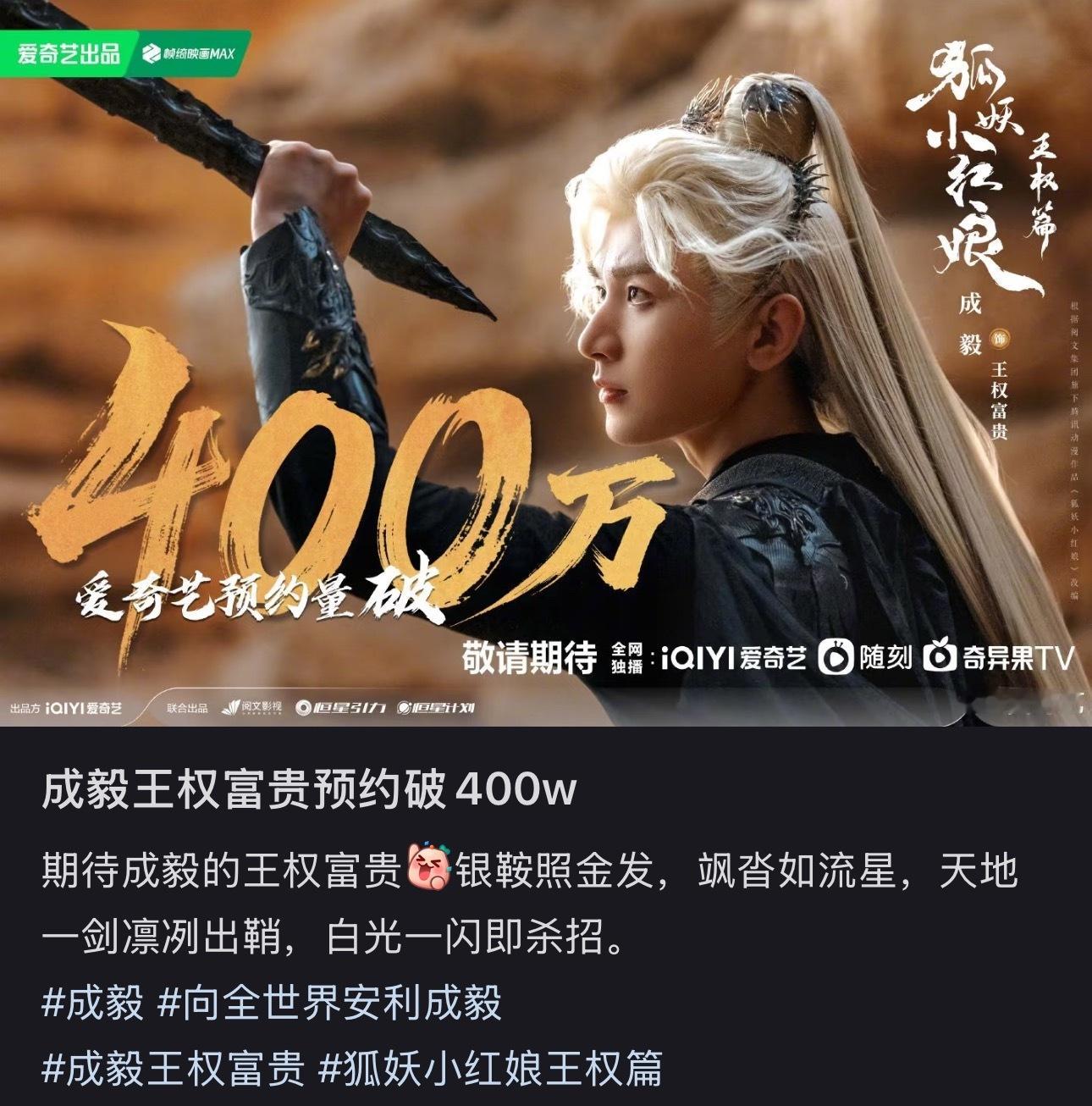 成毅《狐妖小红娘王权篇》预约破400万