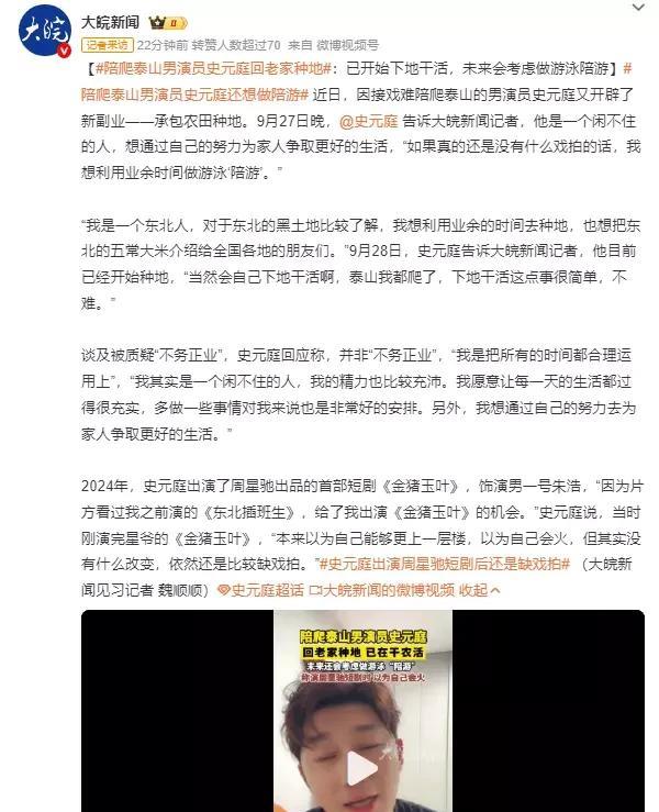 从片场到田间!演员史元庭扛起锄头种地:戏少人不闲,我要养家! 娱乐圈的生存法则,