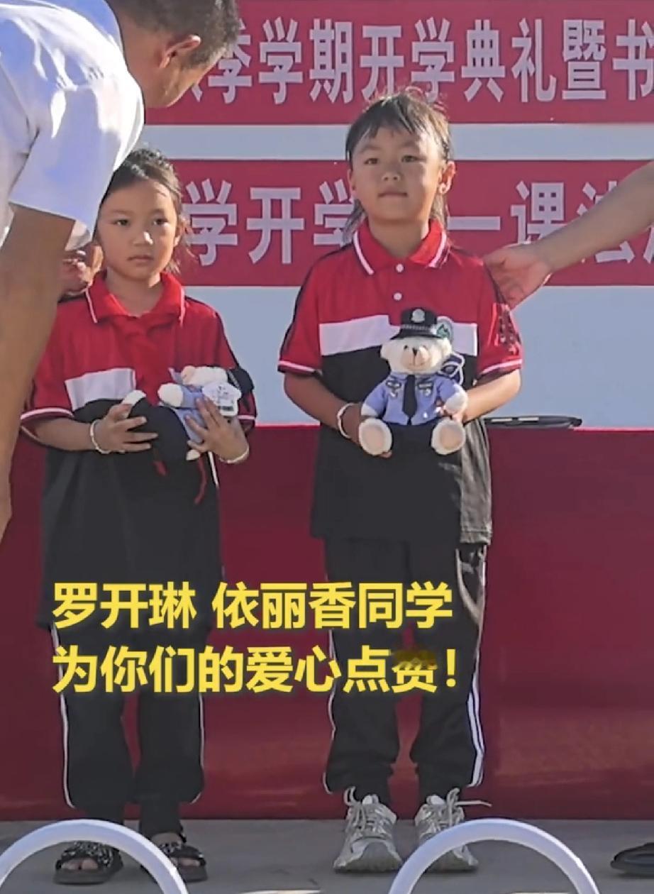 上人民日报了!云南西双版纳,两名7岁小女孩在路边发现一位迷路大爷,但当她们上前询问大爷情况时又发现,大爷话语不清无法沟通。为此两个小女孩并没有放弃帮助大爷,而是一路贴心搀扶着大爷前往派出所寻求帮助。 可见两个女孩带着大爷来到派出所后,虽然显得有些胆怯,但她们还是清楚的向警察同志说明了情况。 这警察同志见是两位小女孩帮助了老人,也是对她们助人为乐的行为竖起了大拇指,并一人奖励了她们几瓶饮料作为鼓励。而拿到饮料的两个小女孩,也是高兴得又蹦又跳的就回家了。 本以为事情就此结束了,但警察同志为了宣扬两个小女孩助人为乐的精神,特意找两个女孩所读学校,并当着全校师生的面赠送她们警察小熊表扬她们,同时也希望所有同学都向她们学习! 不得不说,两个小女孩太暖心太善良了!看来善良是不分年龄的!而她们教科书式的热心帮助别人,更是小朋友甚至大人都应该学习的榜样!必须向这聪明又可爱的俩个小女孩点赞学习! 当然,警察同志当着全校师生表扬这样的好人好事的行为,更是做得恰到好处。这不但为同学们传递了这份美德,也是温馨的“滋养”了两个孩子心中那颗善良的种子茁壮成长!愿这份美德传递到每一个人心中!