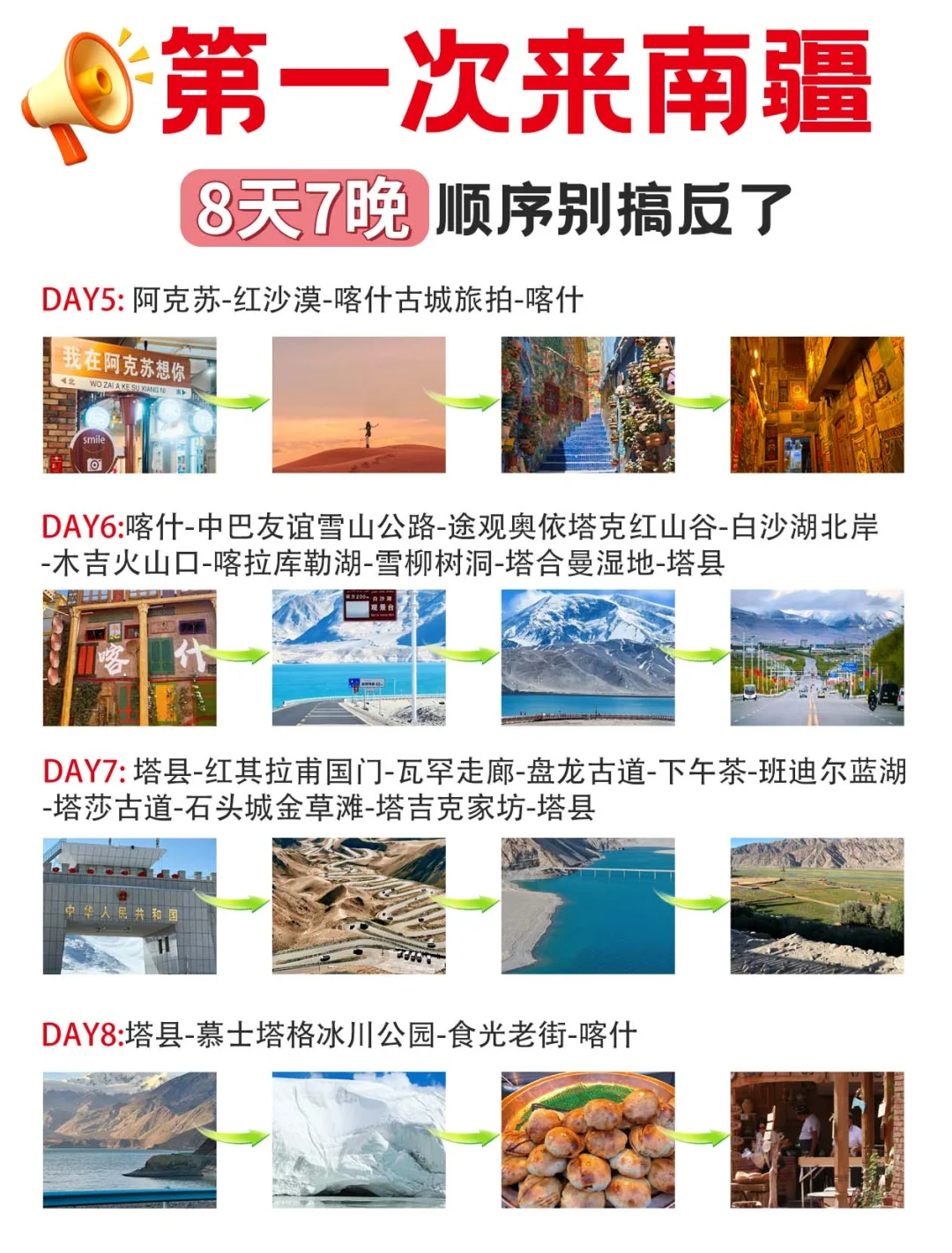 第①次来南疆一头雾水?别急!这份 8 天 7 晚超全攻略,串联喀什、塔县与独库公路精华,带你沉浸式感受南疆的异域风情、壮丽山河!