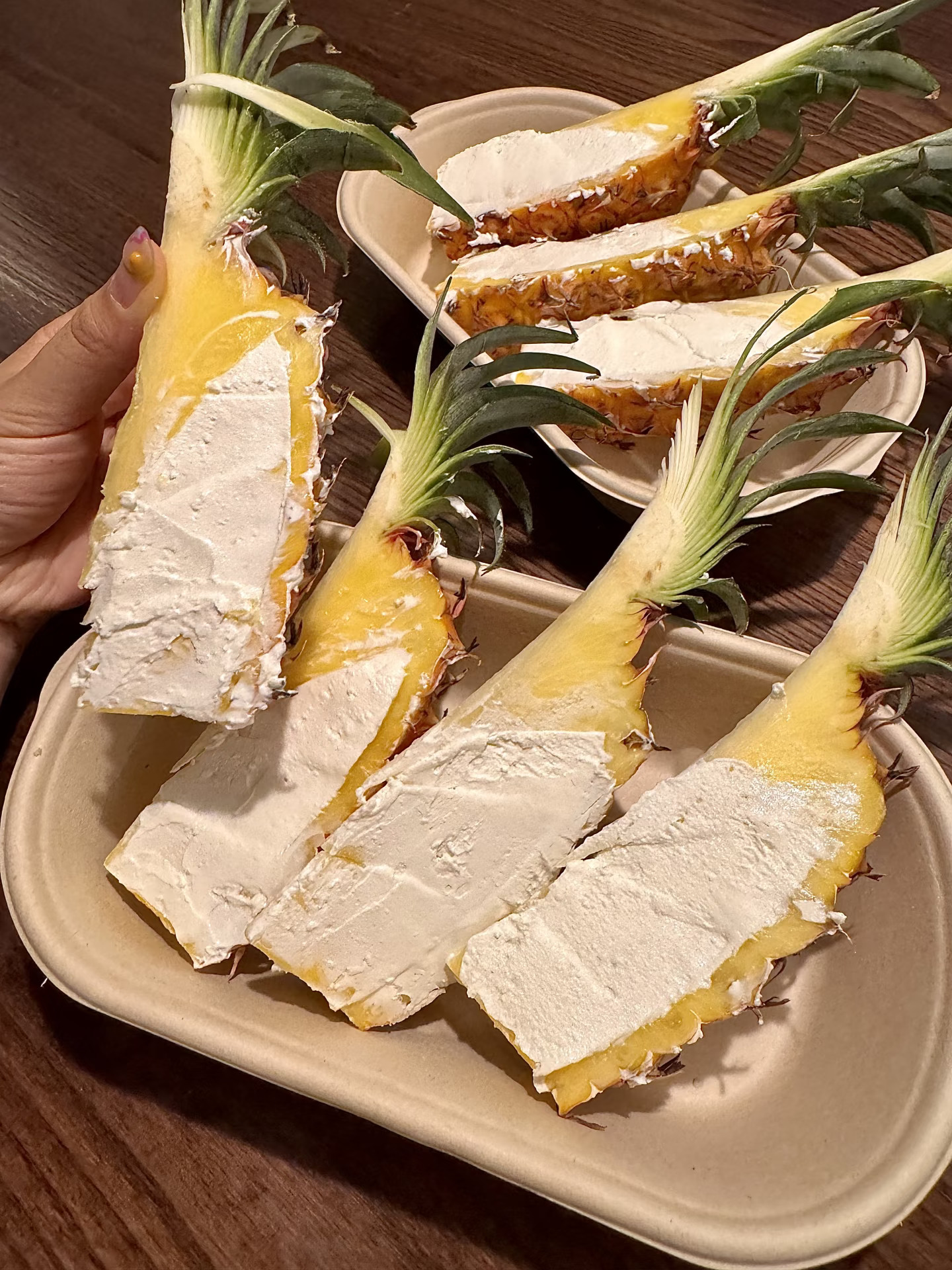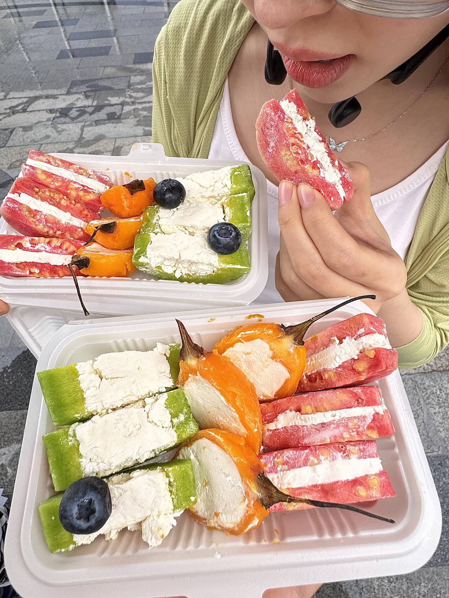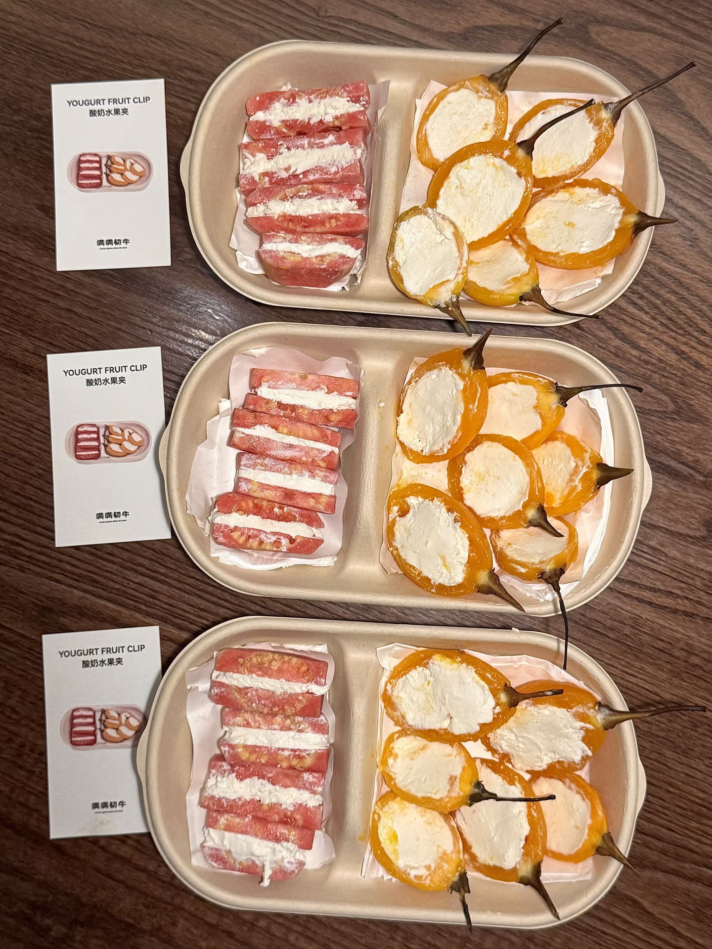 啊啊终于在杭州吃到了!!酸奶水果夹!真的一口惊艳!有芭乐、蜜瓜、菠萝🍍还有特色的树番茄!水果新鲜香甜,配上干噎酸奶…奶呼呼的!口感好奇妙