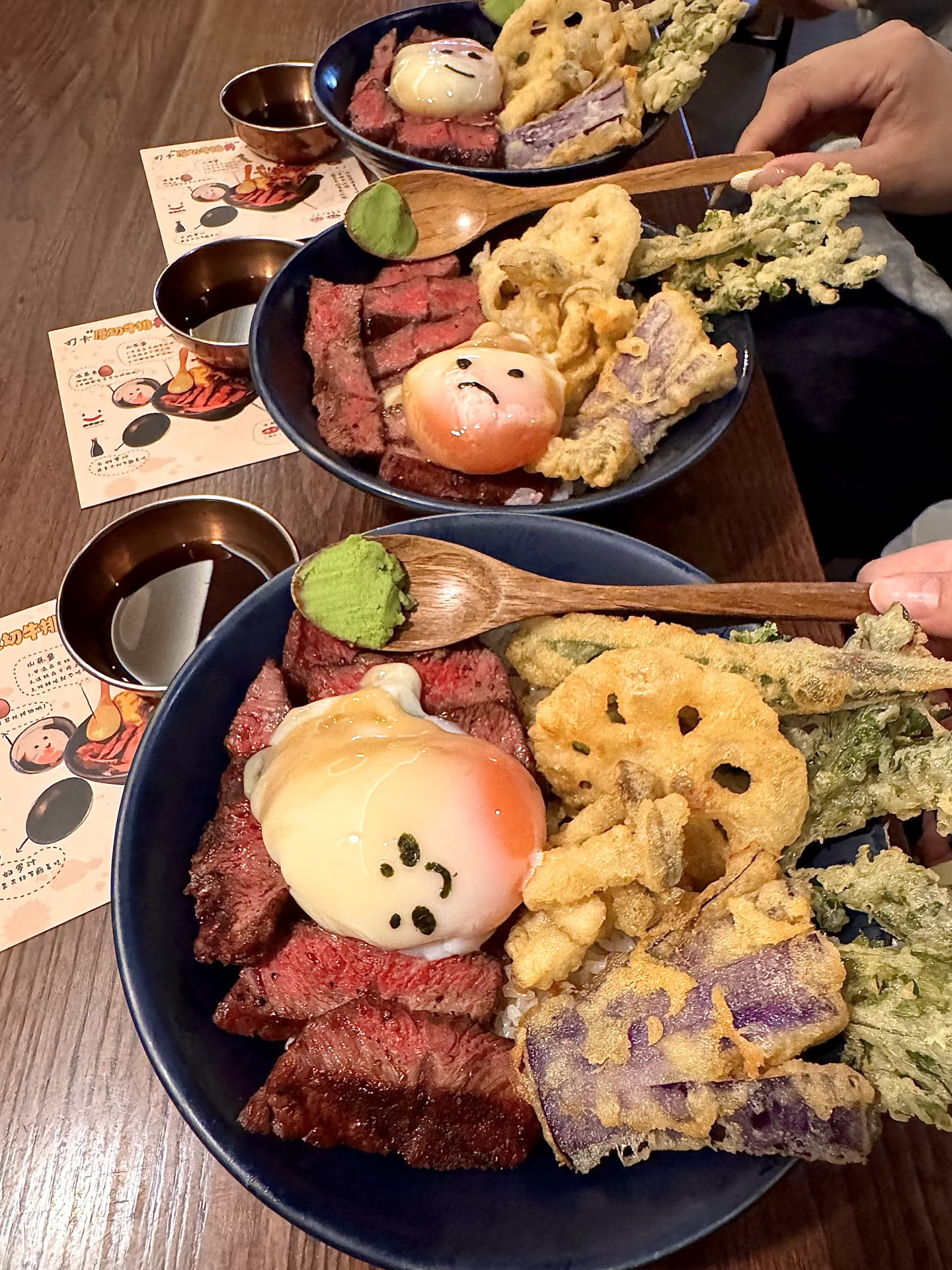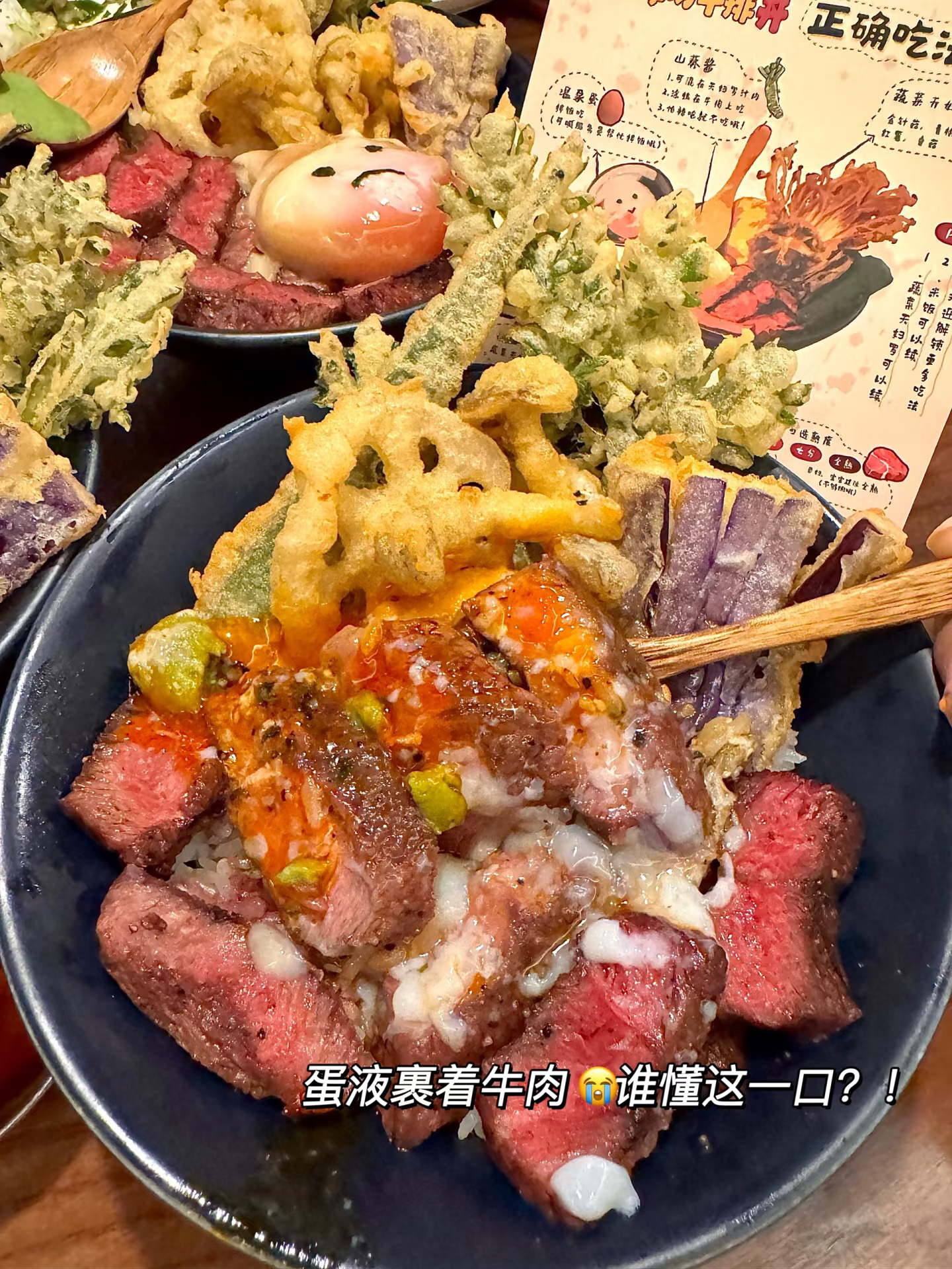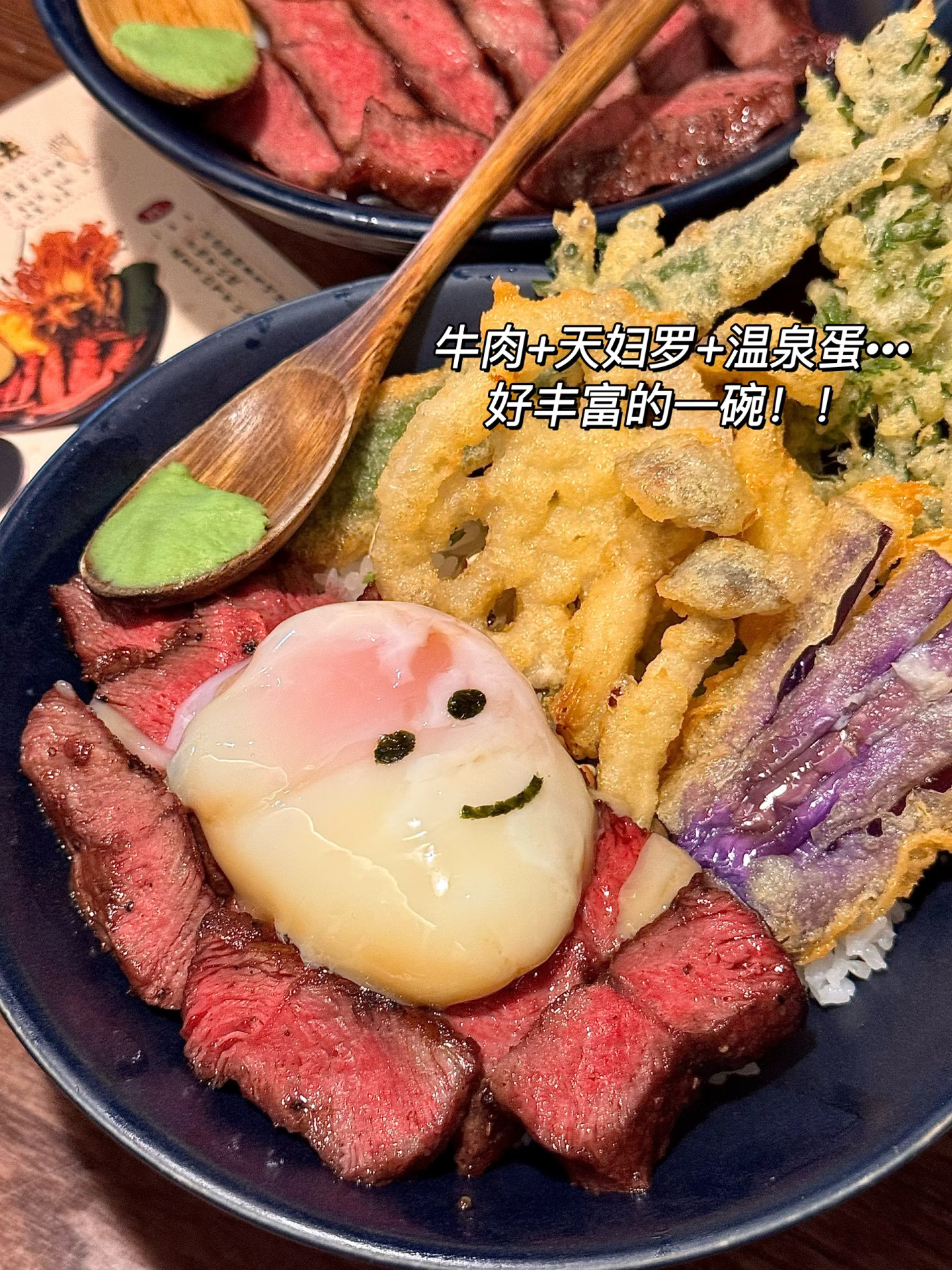 这家(📍满满初牛)个人在杭州最爱的一人食小馆!强推他们家厚切牛排饭🥣嫩牛肉+天妇罗+温泉蛋…一碗好丰富!浇上酱汁真的不要太香了!
