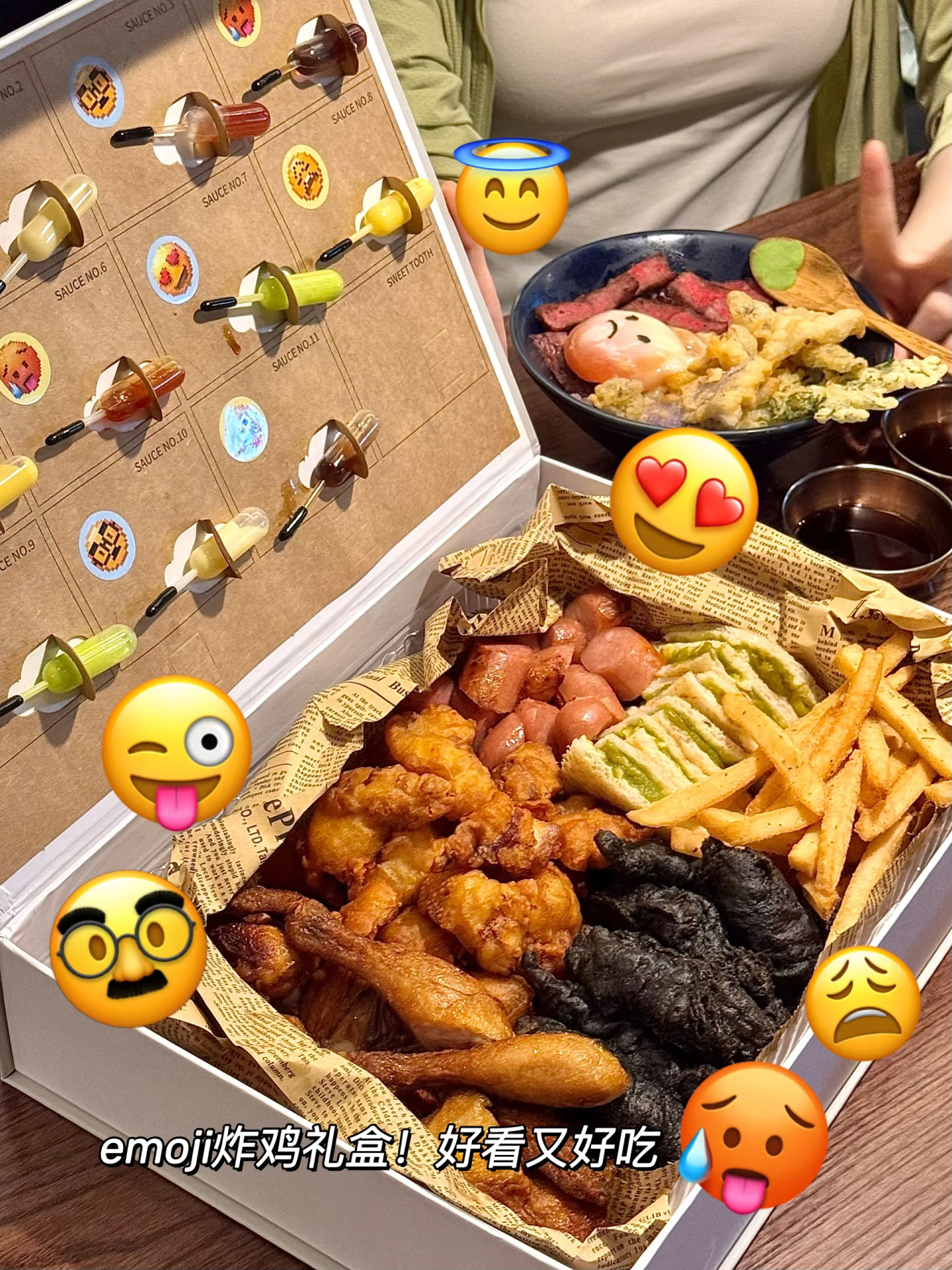 我们还点了emoji炸鸡礼盒🍗巨巨可爱!好适合春游带出去和朋友分享啊啊…还有免费的餐前例汤和水果沙拉🥗不管是味道还是服务都值得夸!!