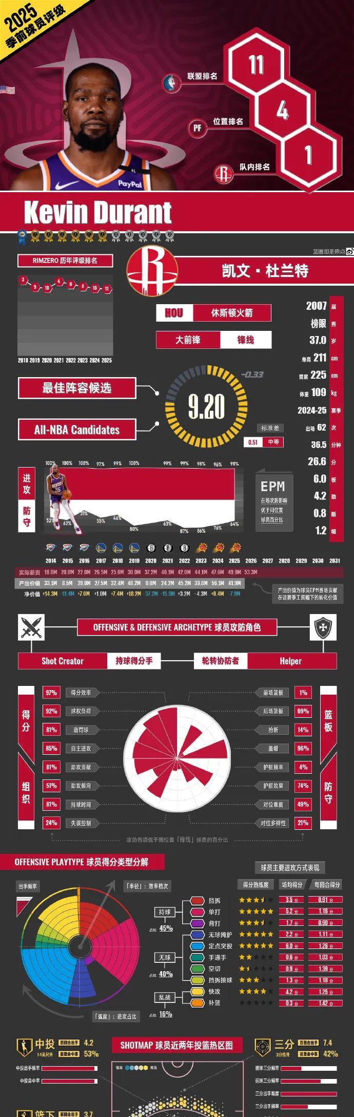 火箭季前遇挫仍具竞争力 火箭休赛期建队成果显著,引进杜兰特、搭建优质前场,但范弗利特ACL受伤给争冠蒙上阴影。球队后场深度不足、射手短缺问题加剧,需年轻球员提升。虽有防守优势与补强筹码,阵容失衡仍考验乌度卡,不过整体竞争力仍在。#火箭阵容# #火箭队阵容竞争# #火箭球员评分#
