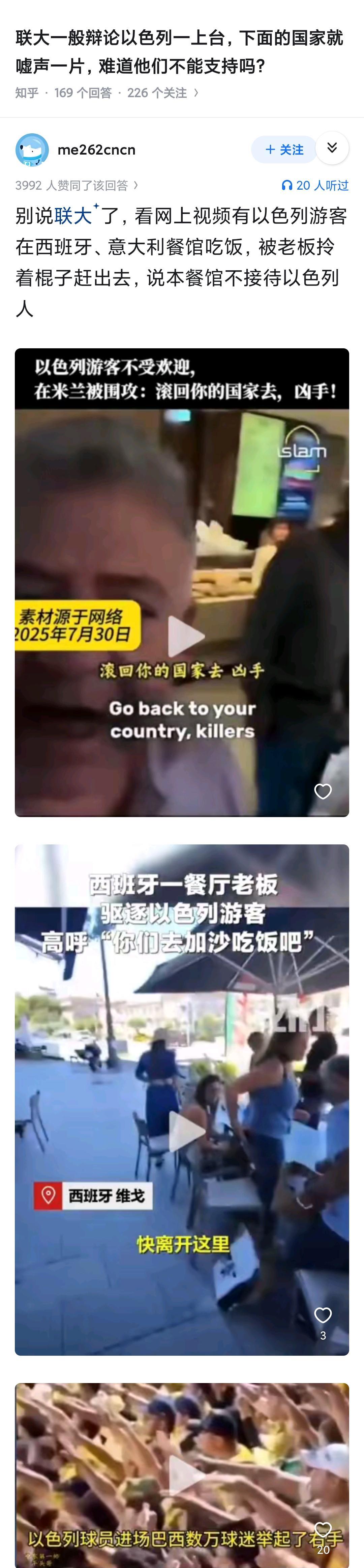 正常人都不会喜欢以色列。 “得道多助失道寡助”的现实体现!能从原来的受害者变成现在这种如过街老鼠一样犹太人也是厉害,不愧是流浪民族。 知小礼而无大义,拘小节而无大德,重末节而轻廉耻,畏威而不怀德,强必寇盗,弱必卑伏。 也难怪几千年了,一个民族都没有自己的国家。 有网友调侃,以色列用三年时间扭转了二战种族屠杀的受害者形象,希特勒本来在地狱待的好好的,有一天突然浑身散发着圣光接引到天堂去了,过了五分钟又因为当初心太善被一脚踢了下来… 说一句大实话,以色列现在在各个国家老百姓中的烂名声,TikTok居功至伟。以前全世界主要媒体都是犹太人控制,所以任何对以色列不好的事情和声音都发不出来。 比如X,推特这种犹太媒体,全世界到现在都不知道以色列到底有多坏。 现在TikTok去中心化,所有人都可以随便发,把以色列所作所为都展现给世界。这就是为什么美国对TikTok恨得不行。
