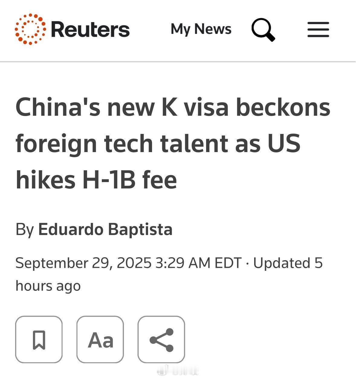 美国舆论在担心H1B收紧和中国K签证会把人才推向中国。