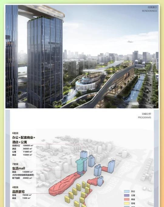 VOL.33 苏宁上海南虹桥综合体项目概念设计 🏙️ 虹桥新地标|苏宁中心打造「二新三创国际基地」 ✨当生态、科技、文化在此交融—— 虹桥苏宁中心以五大设计策略重塑城市封面,打造工作、生活、休闲无界融合的未来城市综合体! 🌿 五大设计维度,定义未来办公新方式 ✅ 生态维度:屋顶水乐园+生态幕墙+有机农场,把自然搬进写字楼 ✅ 健康维度:屋顶运动平台+健身会所,工作间隙随时充电 ✅ 文化维度:苏宁书院+创新科技展厅,滋养创意与思想 ✅ 时尚维度:媒体观演广场+蓝调生活广场,引领都市潮流生活 ✅ 科技维度:光电广场+科技天幕+沉浸式LED,体验未来科技魅力 🏢 多元业态布局,构建完整生态圈 ▫️ 6地块:10万方总部办公+3.6万方酒店+1.2万方公寓 ▫️ 7地块:13万方生活mall,打造虹桥时尚消费新地标 ▫️ 4地块:品质豪宅社区,实现职住平衡理想生活 💡 核心愿景:“二新三创国际基地” 新姿态、新功能、新标杆 创新、创意、创业 全方位办公空间+企业形象打造+城市空间塑造 🌊 特色亮点 ► 绿色之心下沉广场,打造城市绿肺 ► 云河水城,营造亲水休闲空间 ► 生活与工作交错,实现真正的“Live Work Play” 这里不只是一个办公场所,更是一个激发灵感、促进交流、滋养生活的城市共同体!规划设计 城市空间设计 建筑设计 城市更新 城市代表性建筑 鸟瞰图 城市艺术设计 公共空间设计 鸟瞰效果图