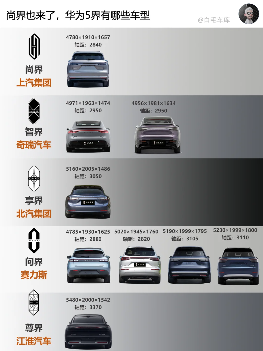 ● 智界:由华为与奇瑞合作推出,首款车型为智界S7。后续还推出了智界R7,车型主要面向年轻群体