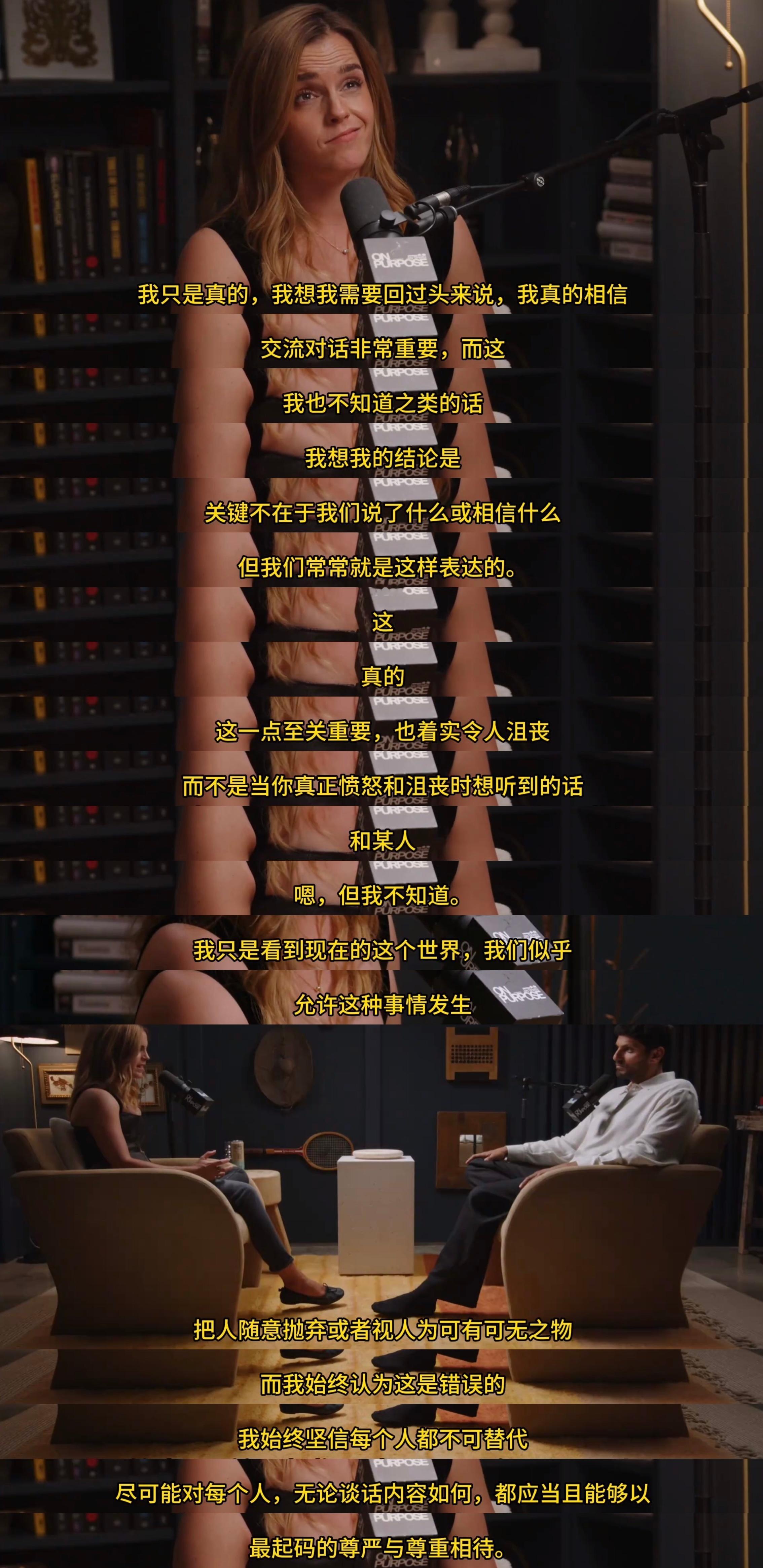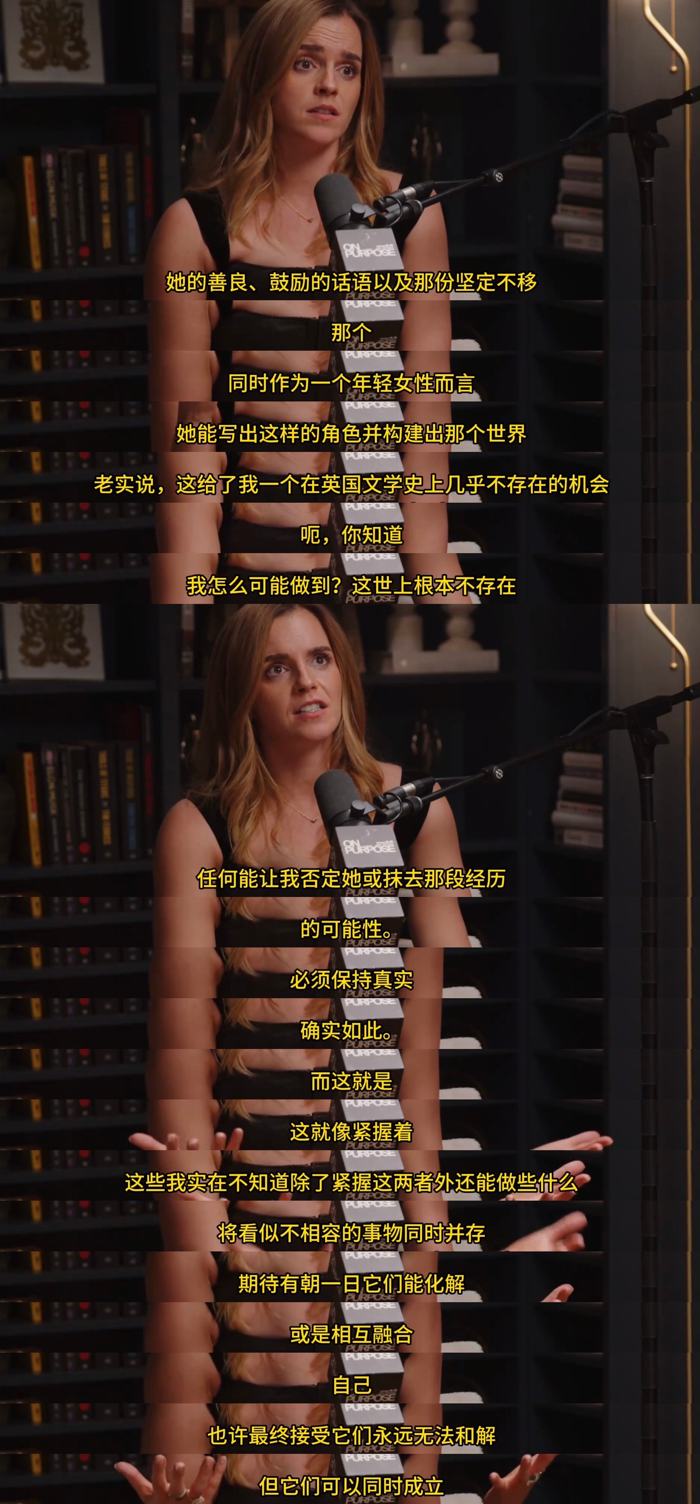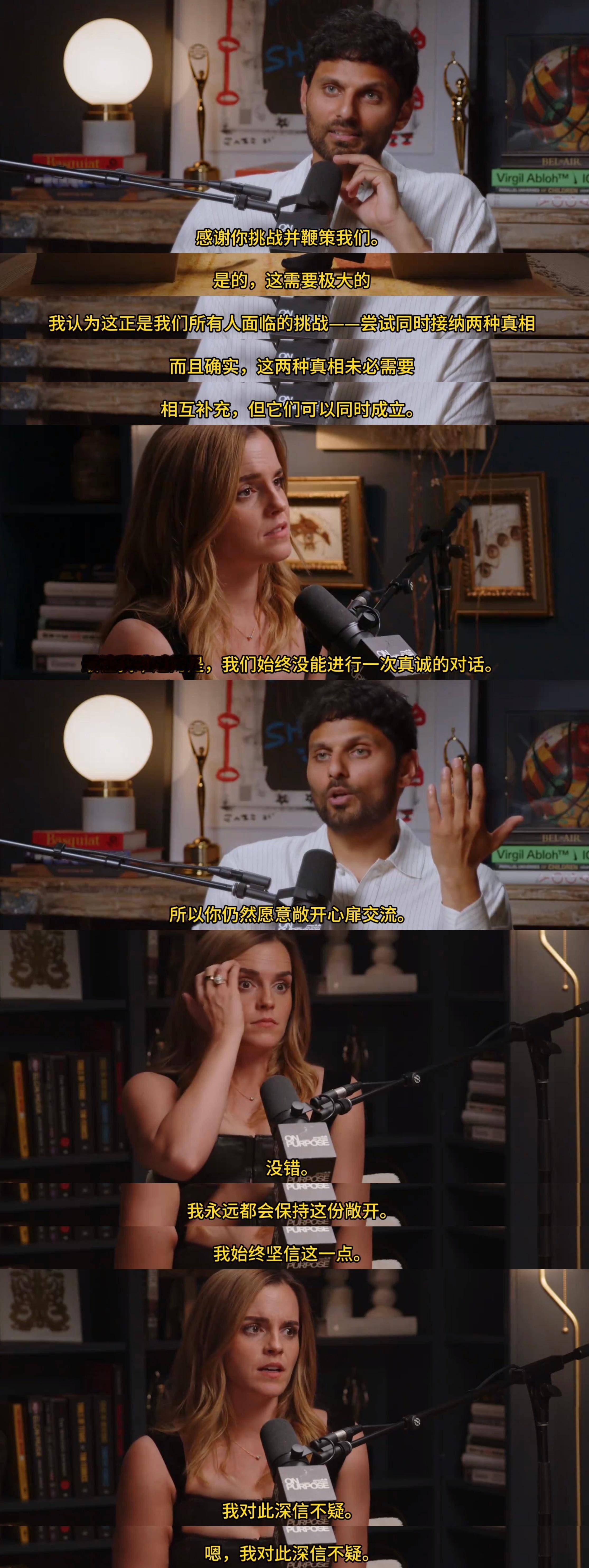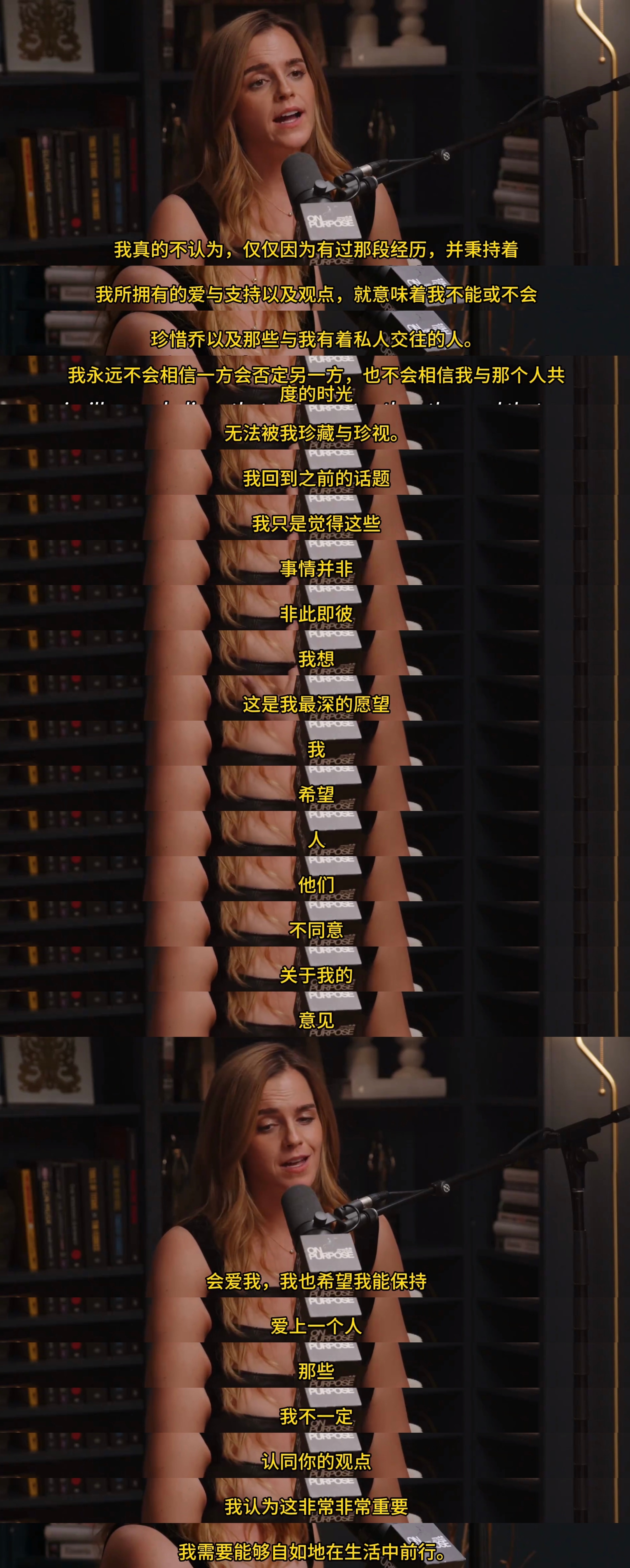 艾玛在访谈里回应了和罗琳的决裂,并示好:“我永远不会相信一方会否定另一方,也不会